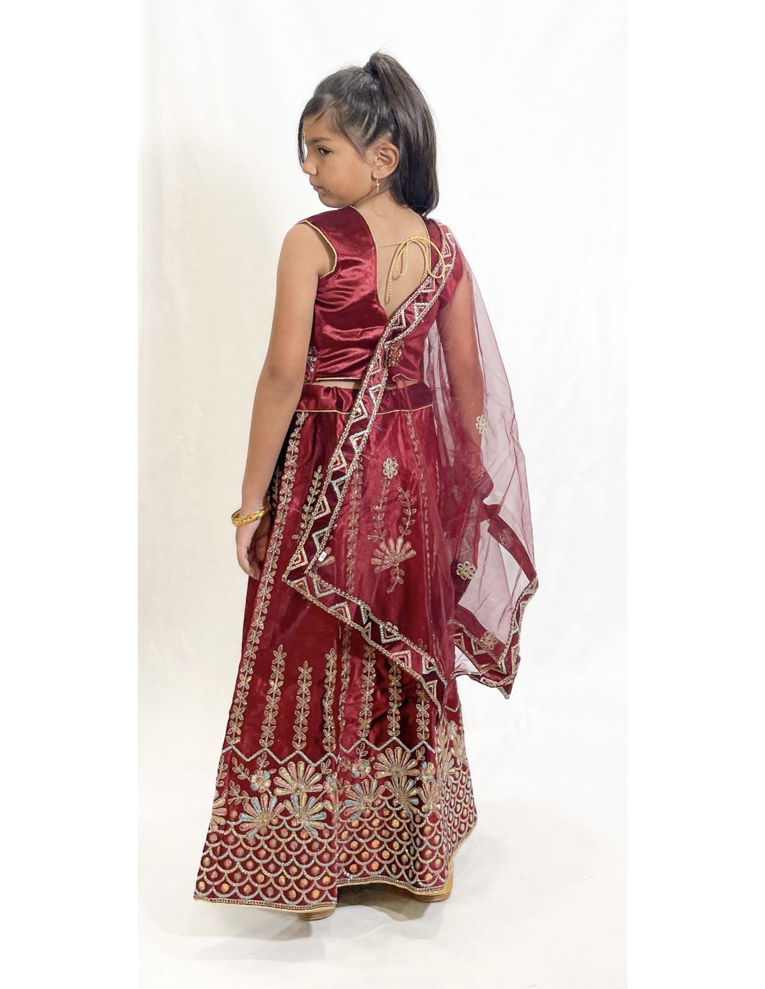 Faites briller votre petite princesse avec ces magnifiques ensembles lehenga choli inspirés du style Bollywood ! Composés d’une jupe évasée richement brodée, d’un bustier assorti et d’un dupatta en voile léger, ces tenues traditionnelles sont parfaites pour toutes les occasions festives : mariages, Eid, anniversaires ou fêtes indiennes.