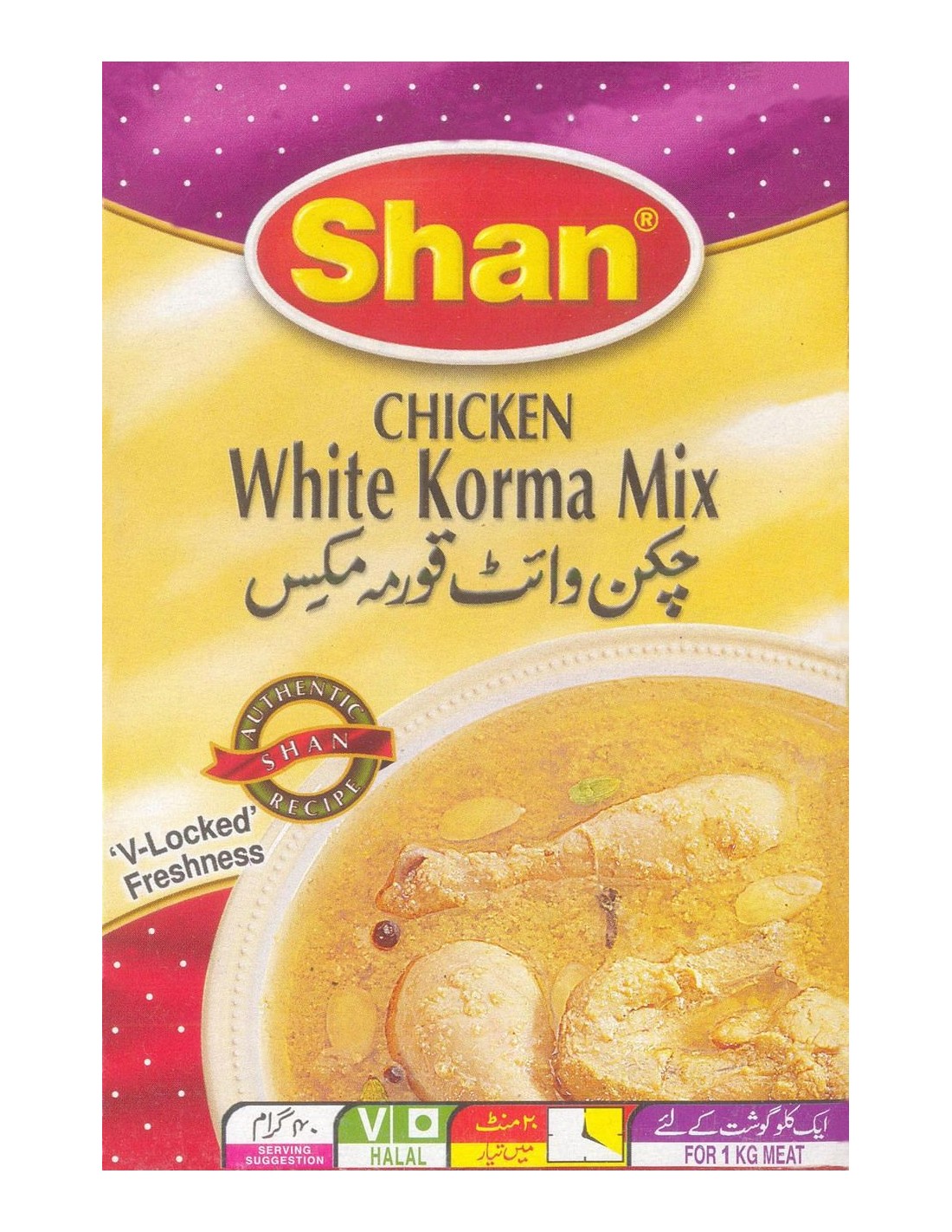 - Blanc de poulet korma: 1 kg de poulet désossées, en cubes 400g d'oignon, coupé en petits dés 1 cuillère à soupe de pâte d'ail 2 cuillères à soupe de pâte de gingembre 2 cuillères à soupe de piments verts, émincés 4 cuillères à soupe de jus de citron 200g de yogourt nature 180g ghee / huile Shan blanc de poulet Korma Mix