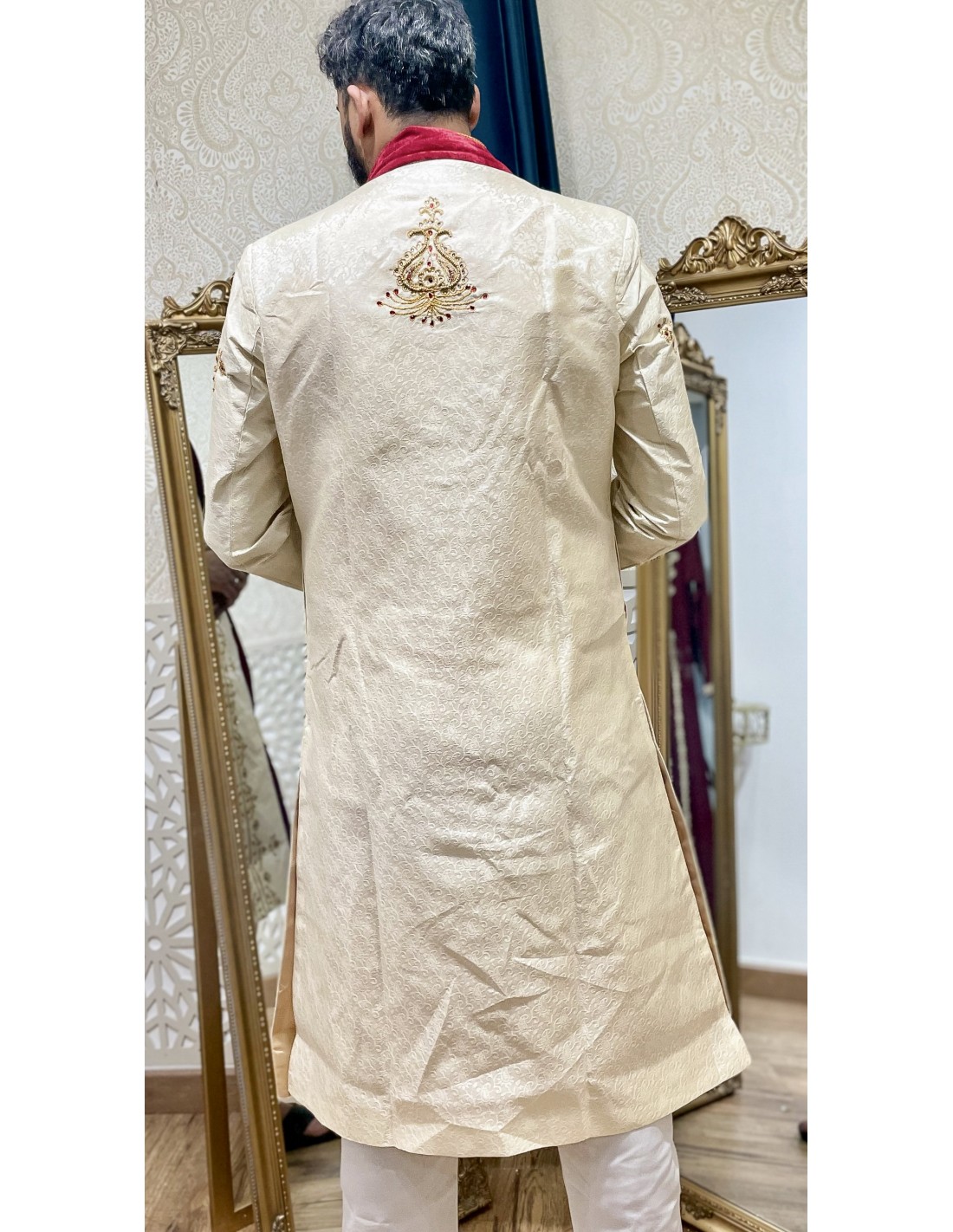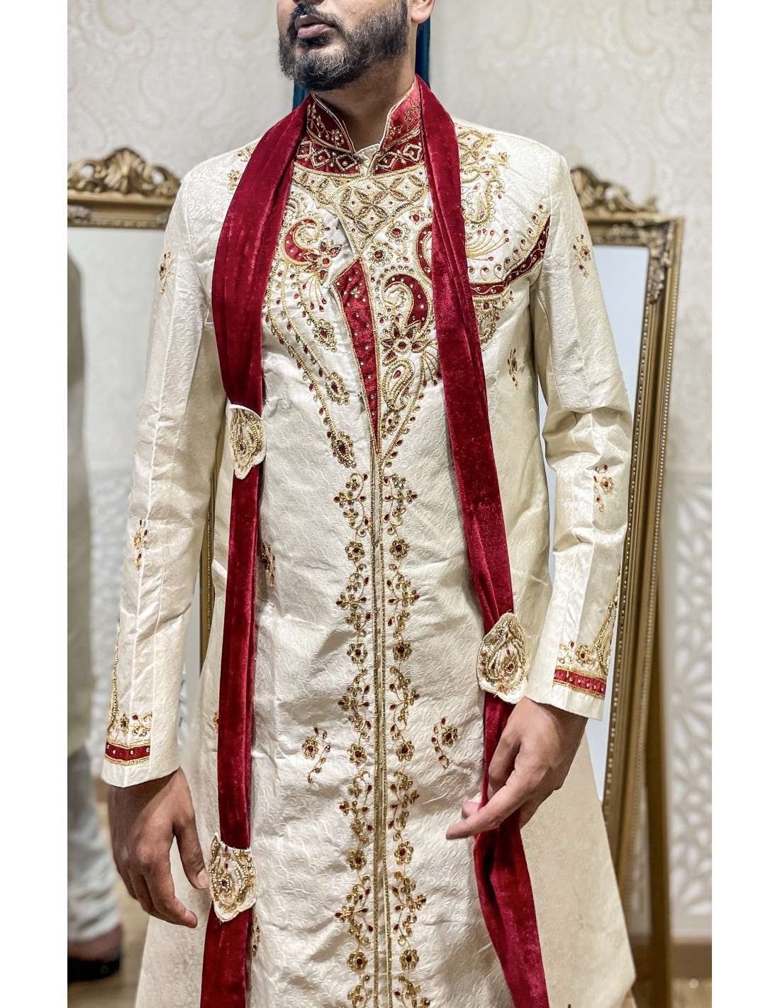 Sherwani homme haute gamme de couleur blanc cassé