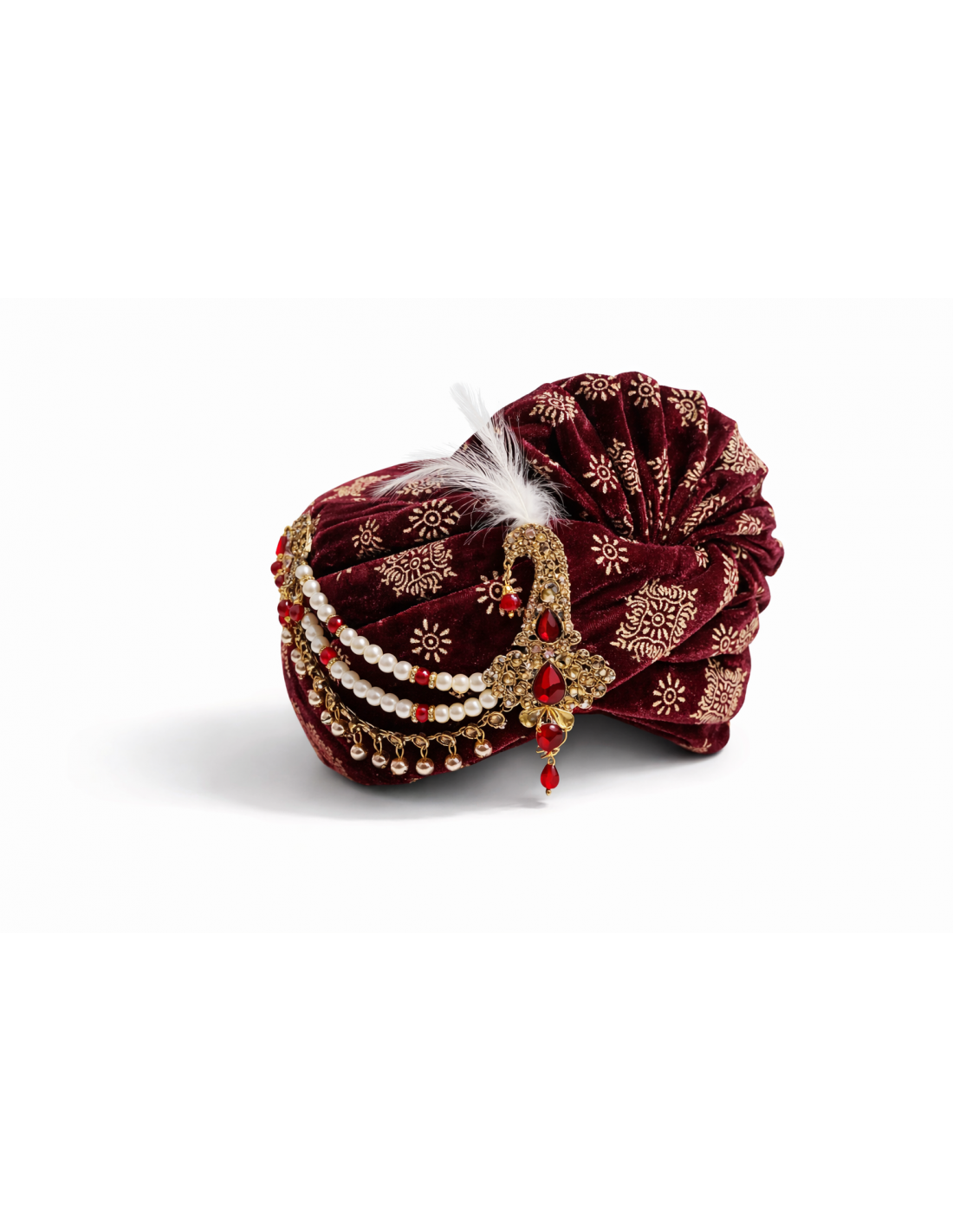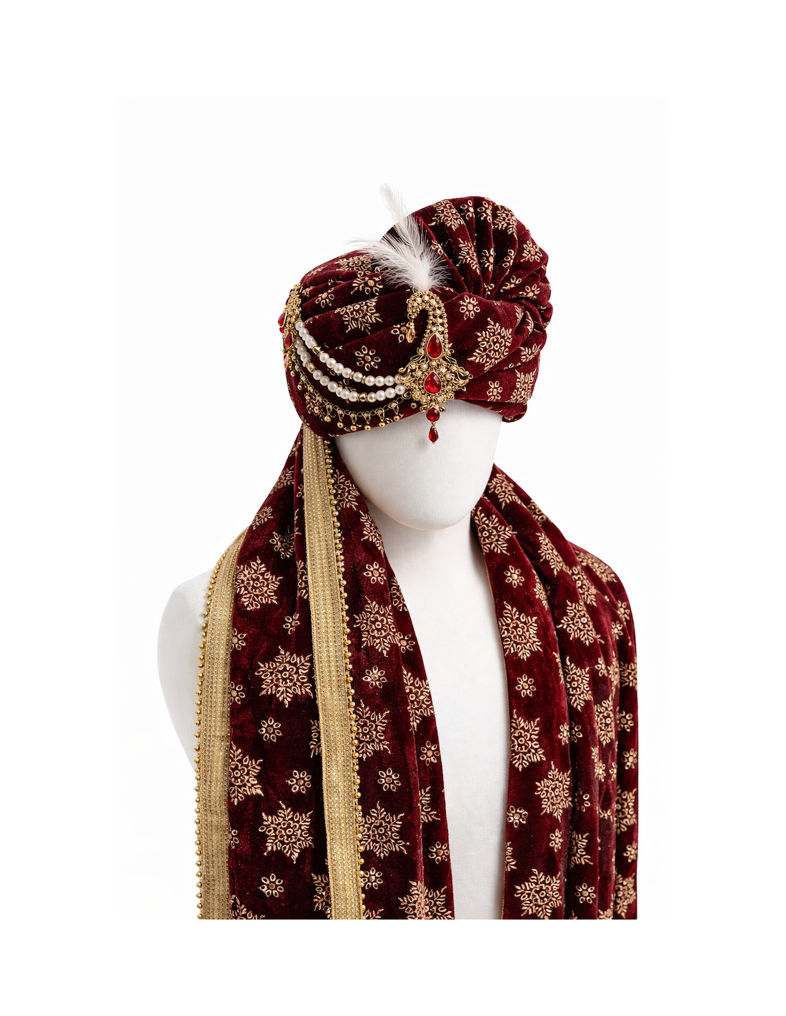 Chapeau traditionnel indien Pagdi Homme Luxe avec Étole – Turban Maharaja de Mariage Premium Bordeaux  - 1