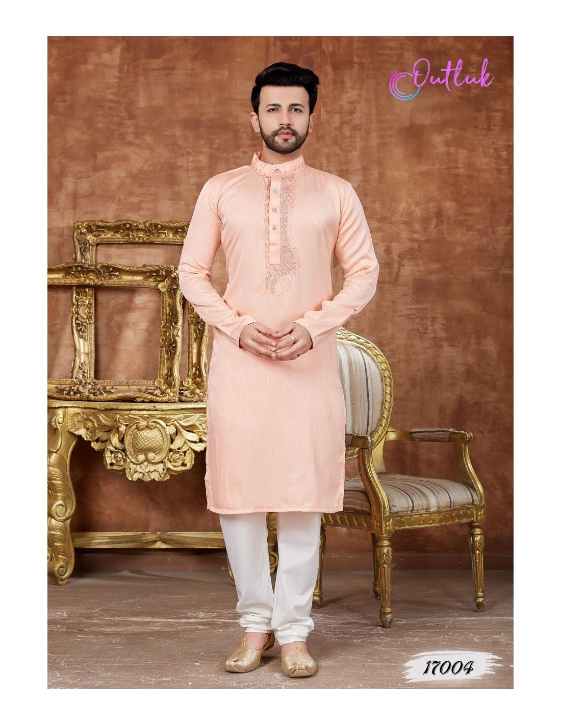 Kurta indien pour homme avec des broderie sur le devant.