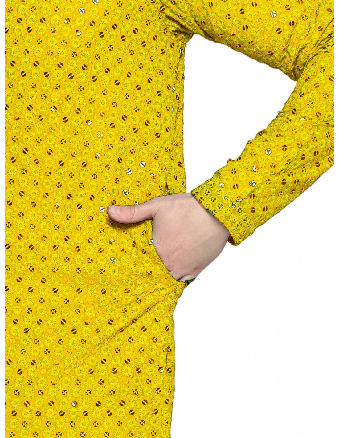 Kurta Tenue indien homme Ensemble Jaune Chikankari  - 2