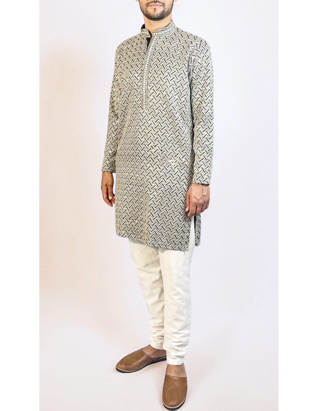 Tenue indienne pour homme en cotton et  broderies sequins à petit prix.