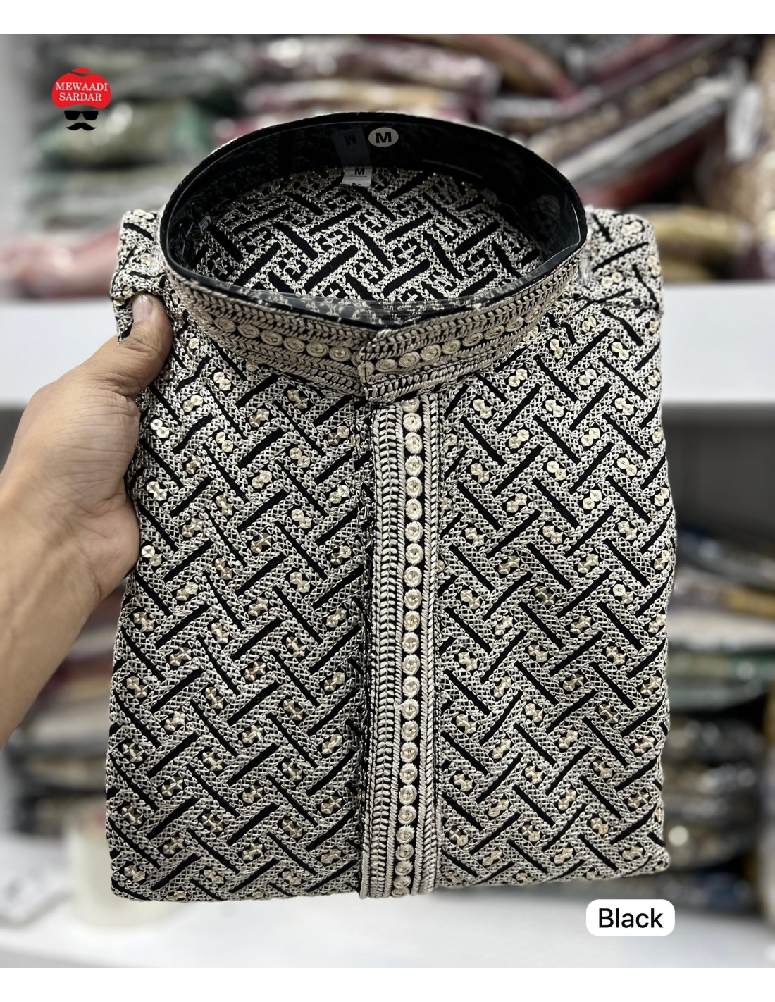 Kurta Homme Noir et Blanc à Motif Géométrique – Élégance Moderne et Tradition