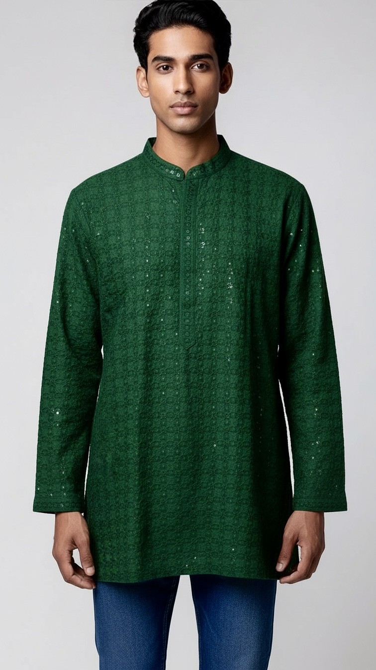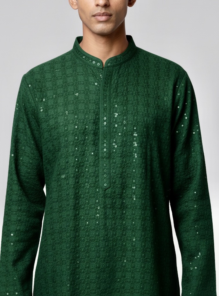 Kurta homme élégant en tissu bordeaux, orné de fines broderies et de touches discrètes de sequins pour un effet raffiné. Sa coupe droite et son col mao apportent un style moderne tout en conservant l’authenticité du vêtement traditionnel indien. Confortable et stylé, il est parfait pour les mariages, fêtes, soirées orientales ou célébrations...