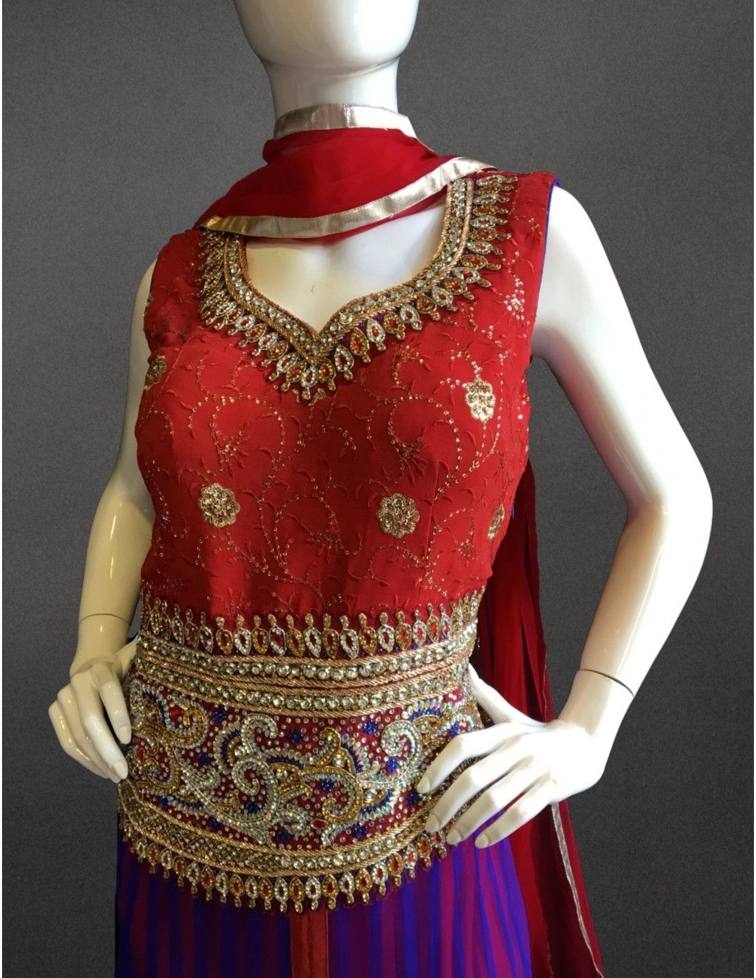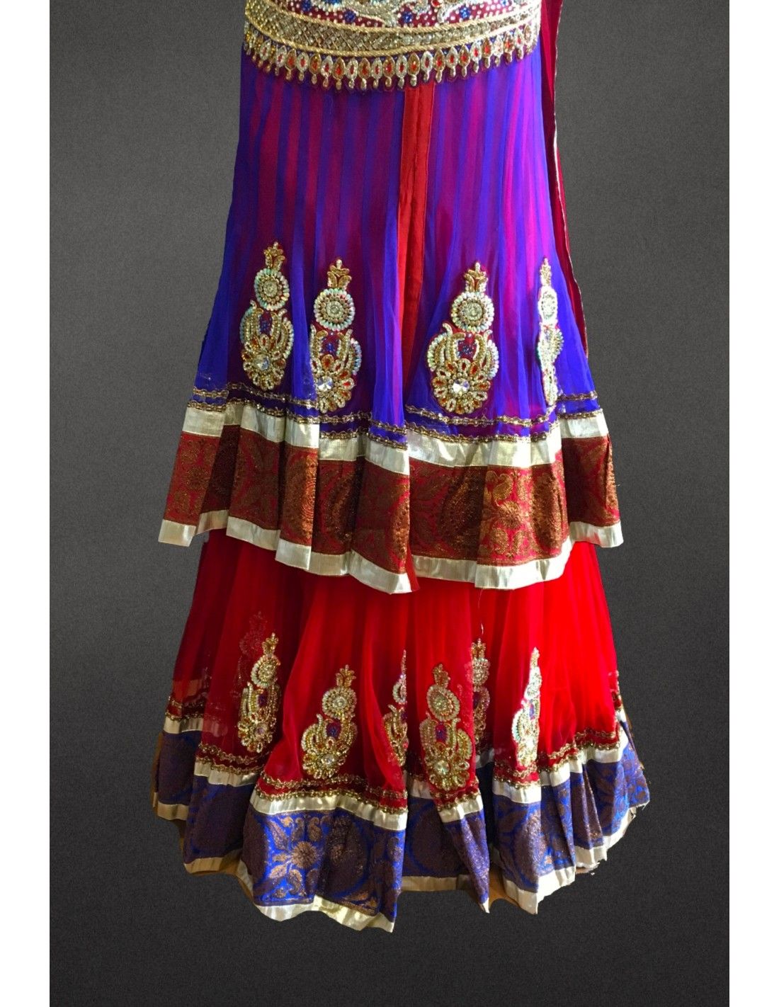 lehanga précieusement perlé de motifs couleur or et rouge, cette tenue très élégante et raffinée, vous sublimera telle une princesse indienne!