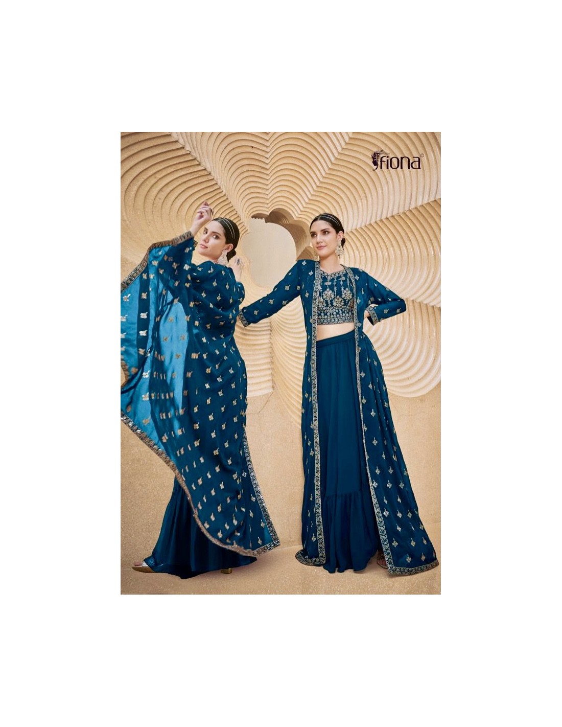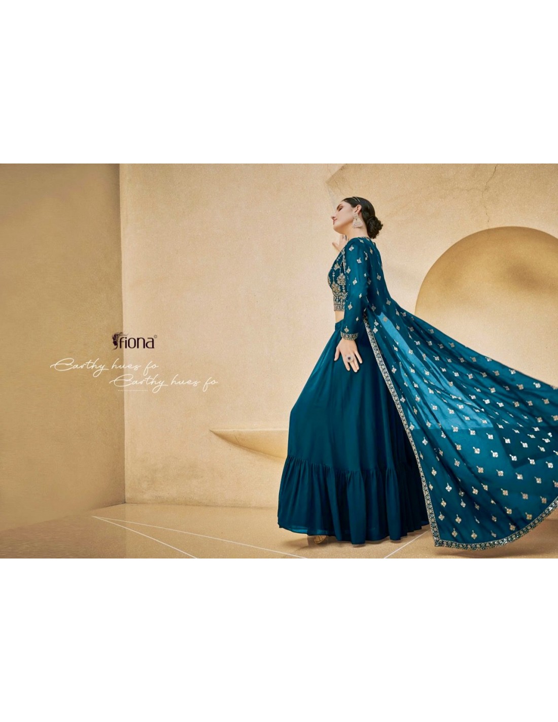 Lehenga sari Choli Fiona Veste brodé chic moderne Bleu turquoise  - 1