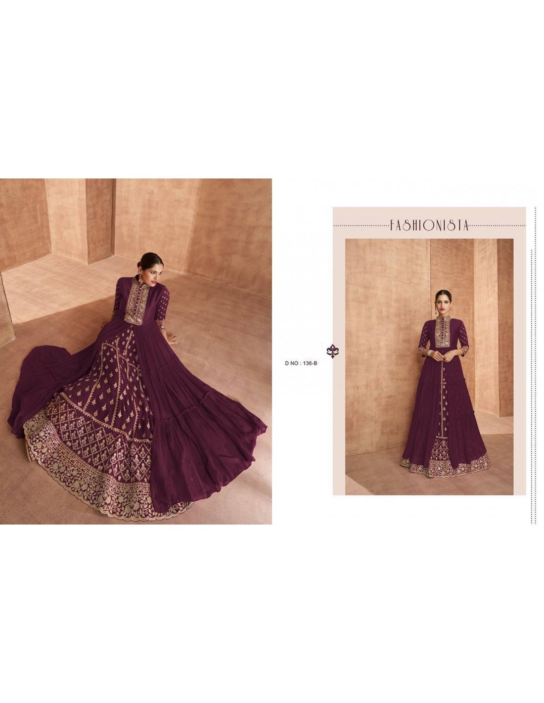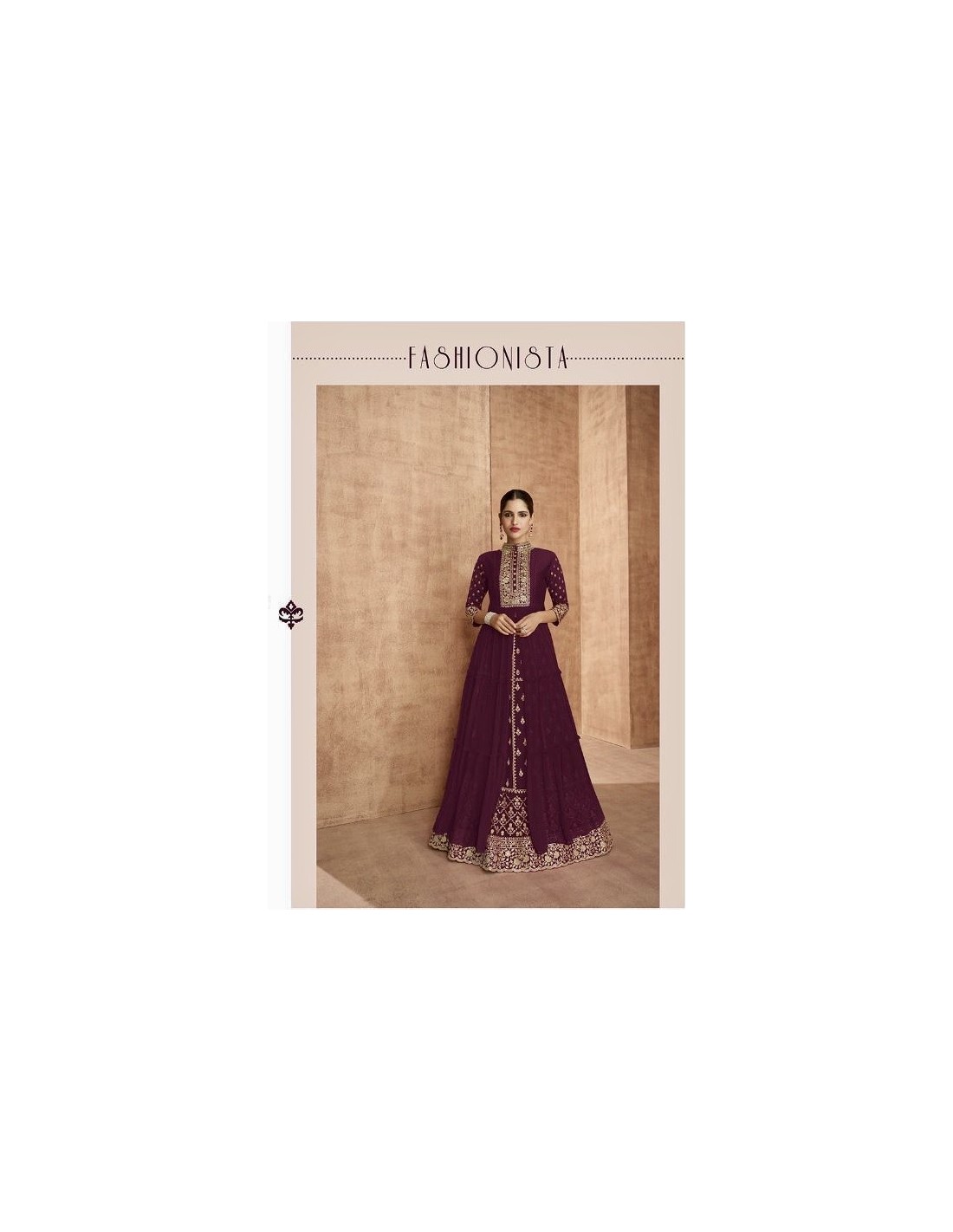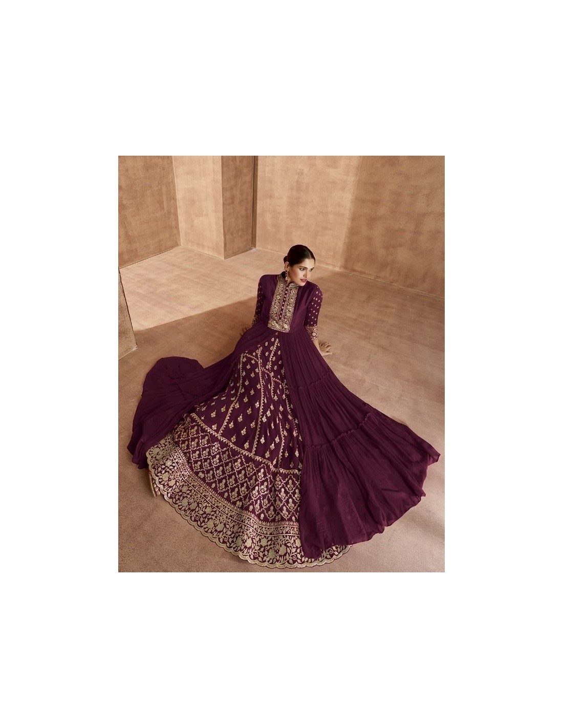 Lehenga sari Choli Shaina brodé evase Prune  - 1