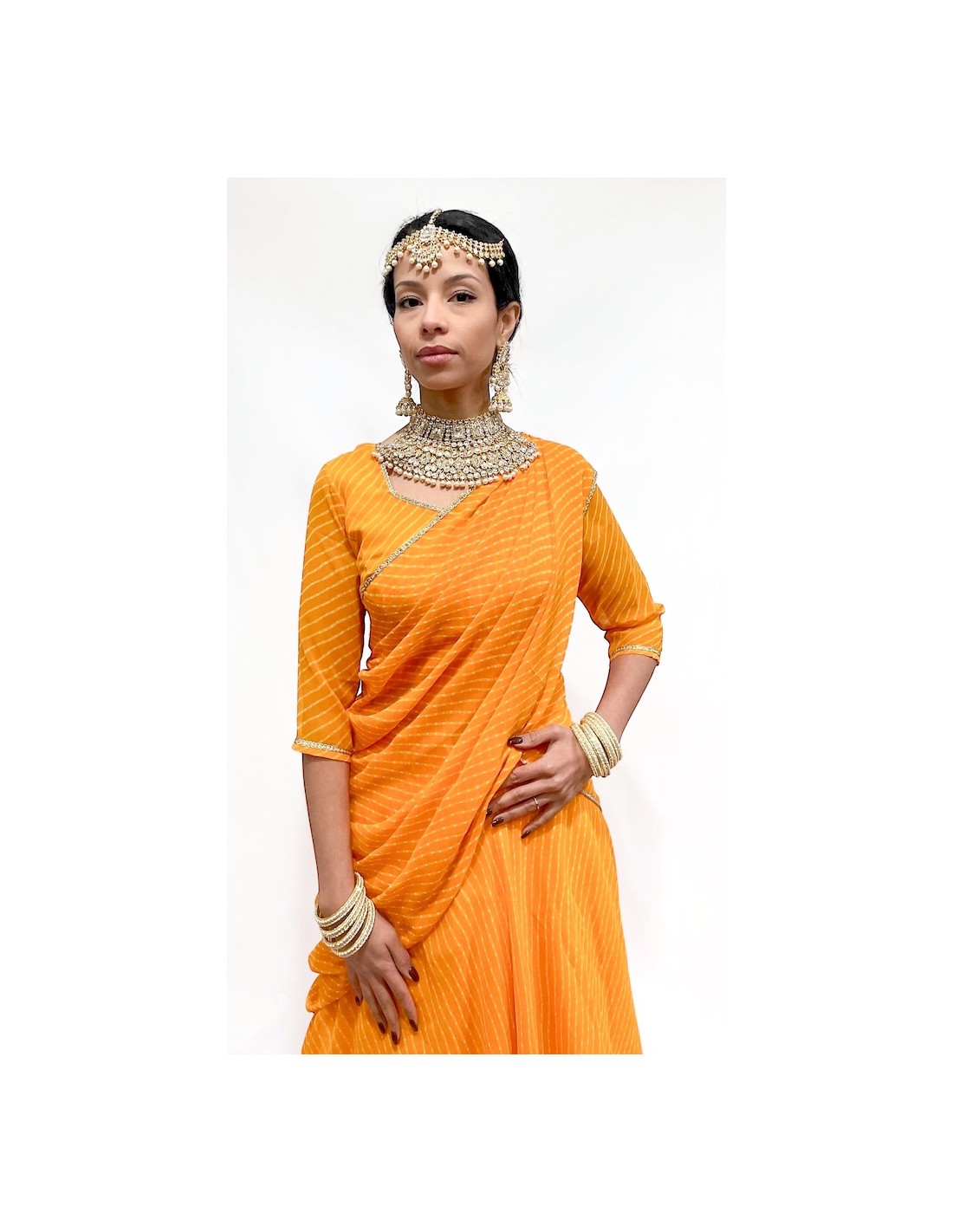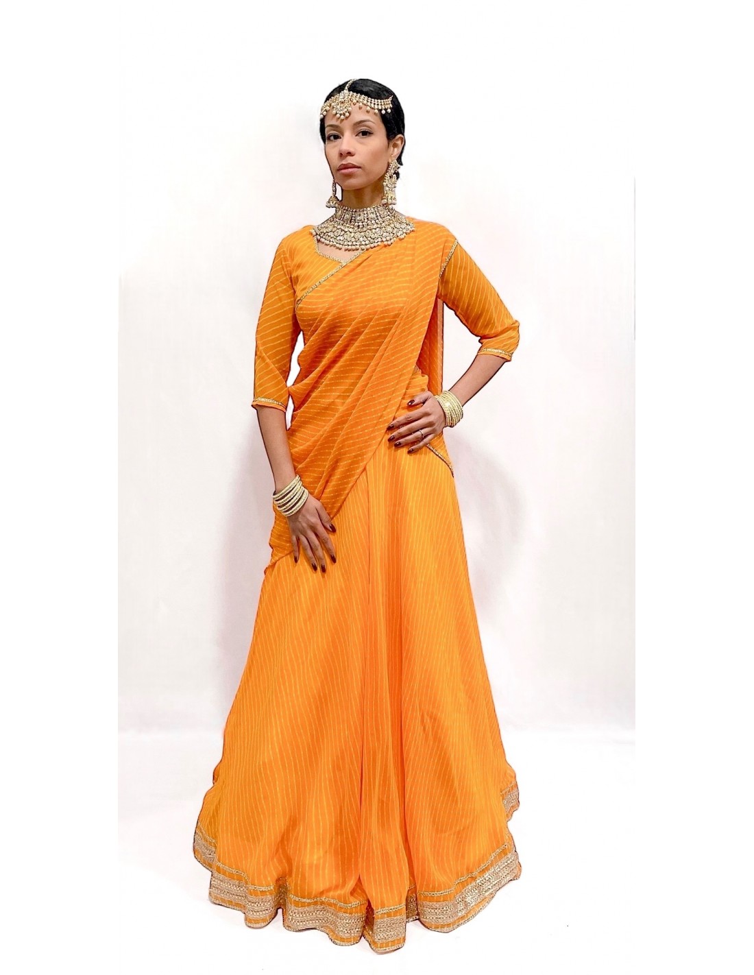 Lehenga choli ZEEL sari jupe evase saffron  - 1