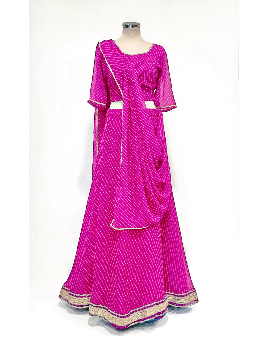 Lehenga Choli en tissu voile Georgette imprimée, avec liseré doré