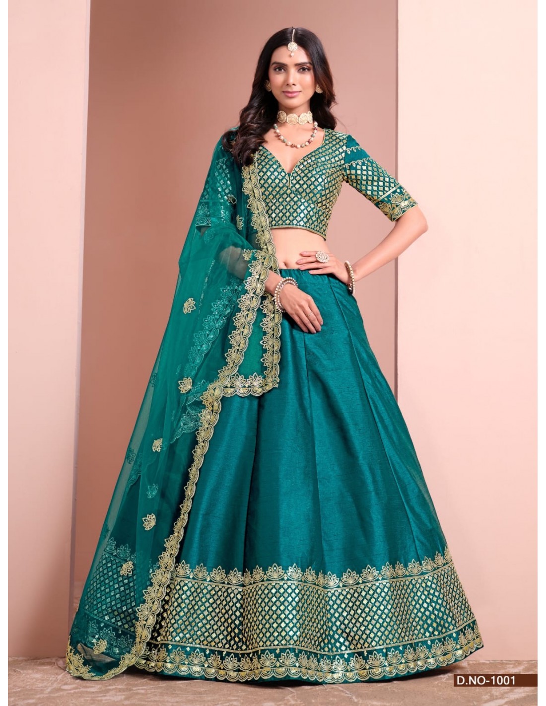 Lehenga Choli Bollywood Glamour - Tenue Indienne de Mariage Élégante (Tailles 36 à 46) Bleu vert royal  - 1