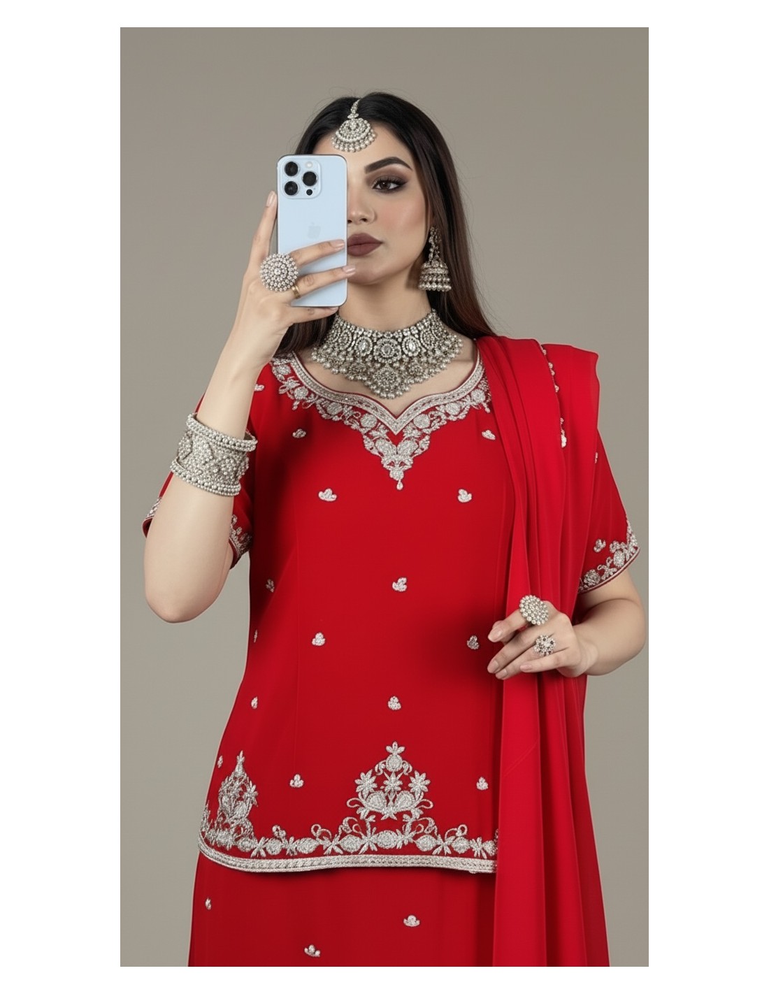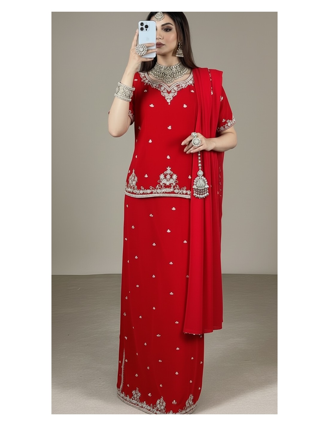 Ensemble 3 pièces : haut, jupe longue et dupatta