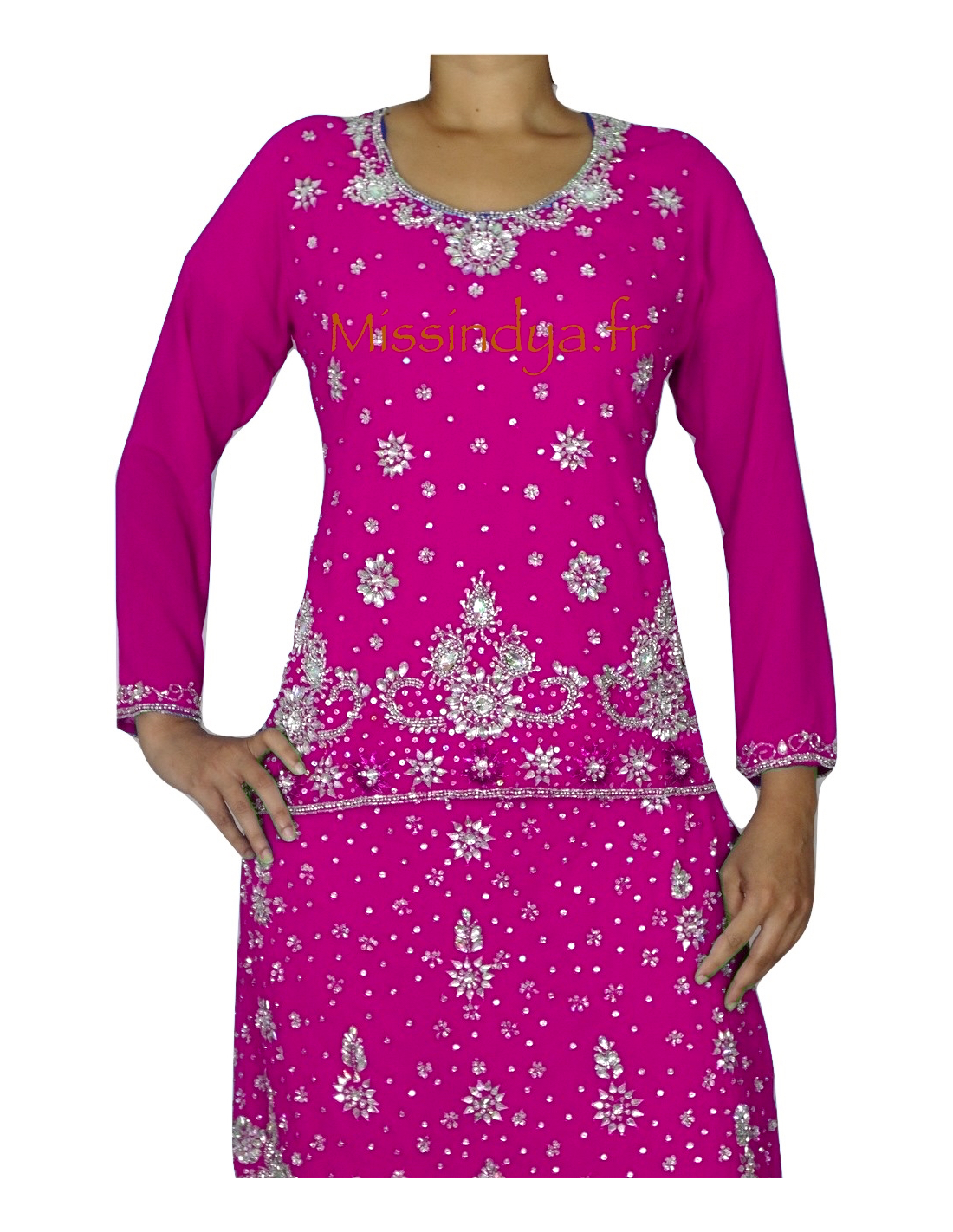 une longue écharpe tissu voile également, au bords cousues de perles argentés .
