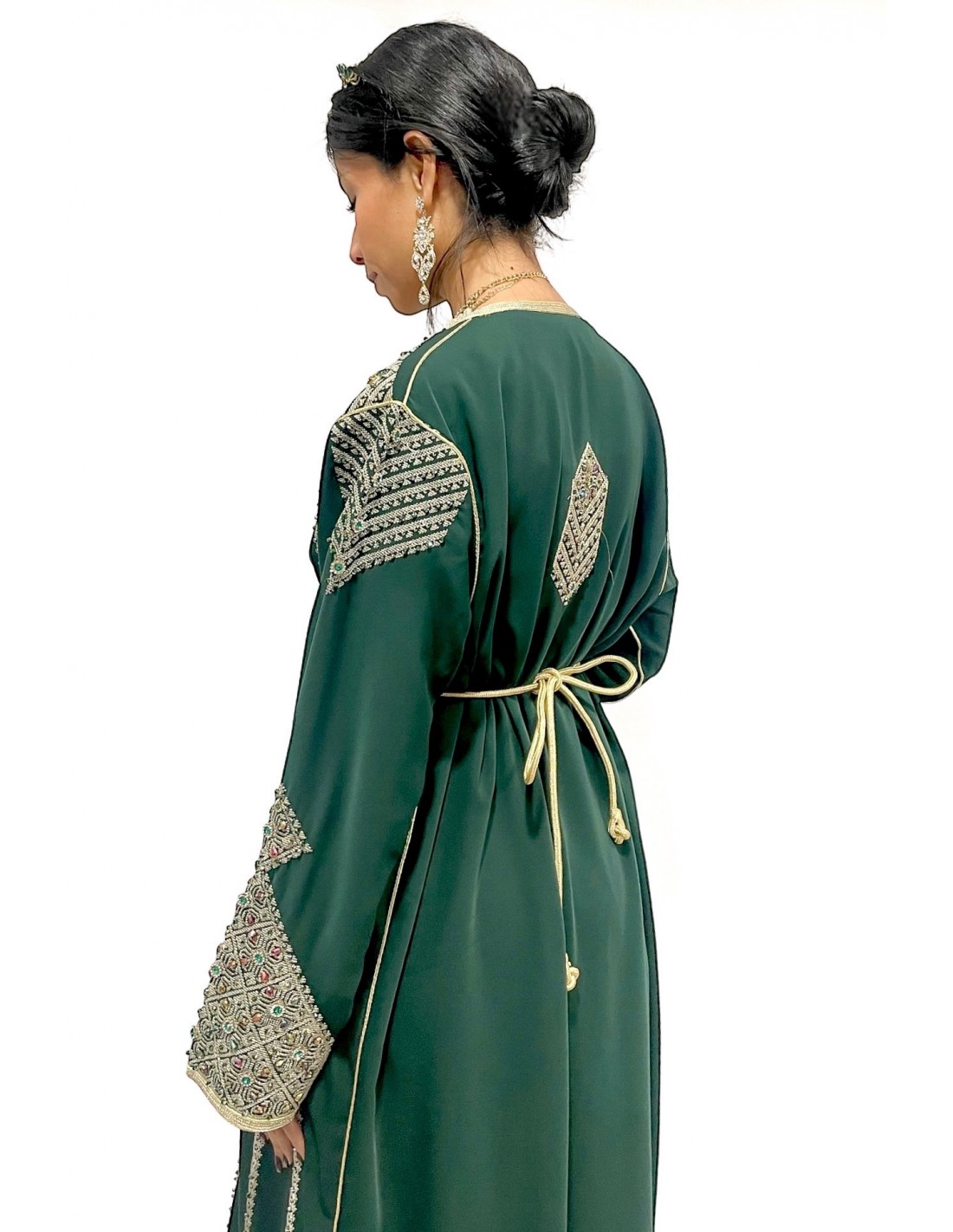 takchita 2 pièces en vert brodée et perlée a la mais,