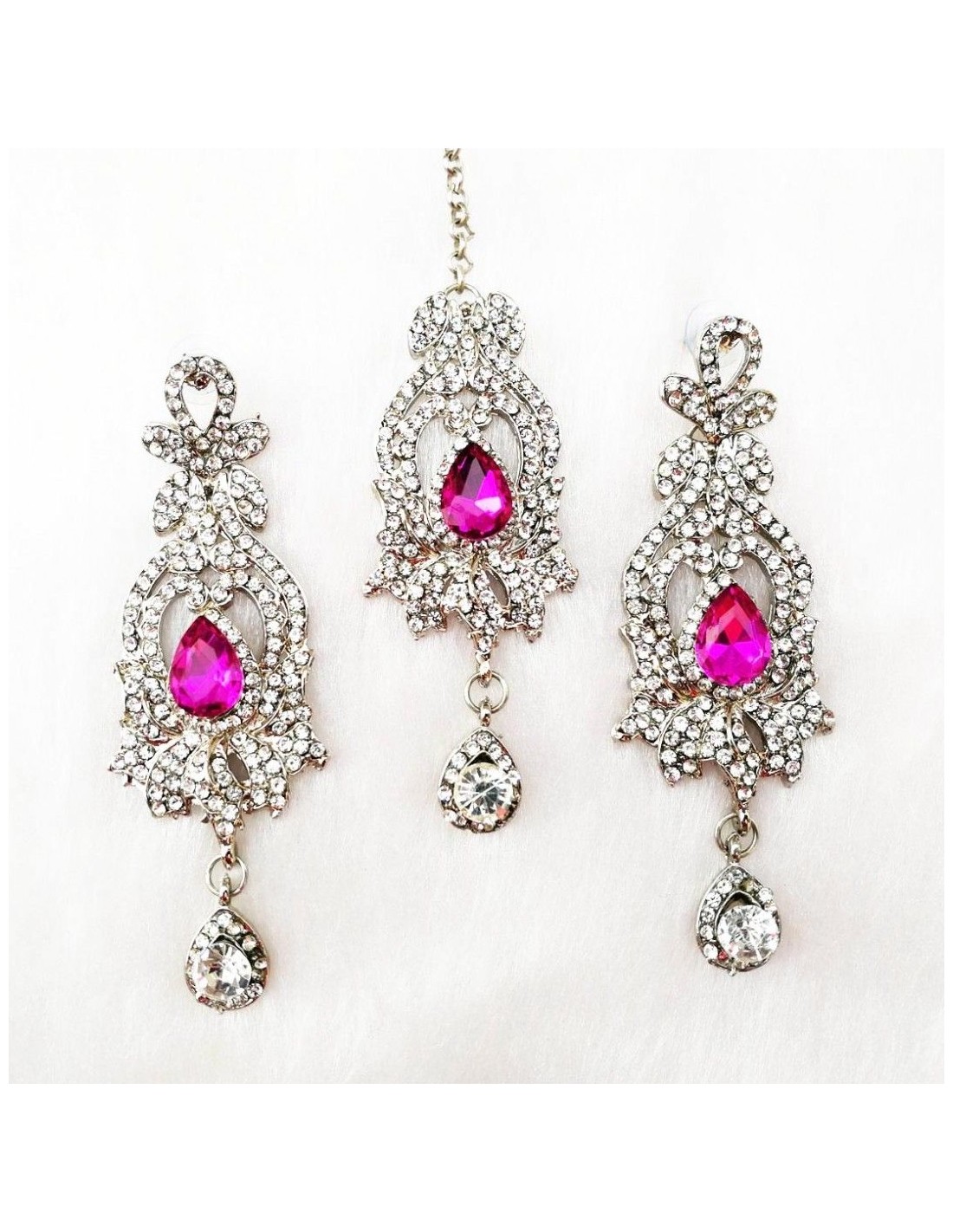Set Bijoux indiens ethnique Rose Argenté FarJ