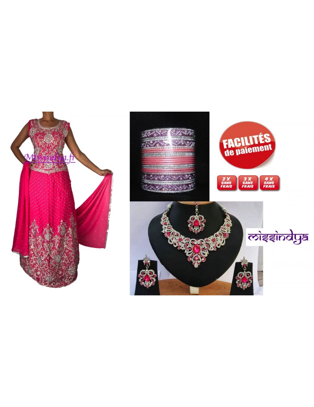Pack Spéciale pour les mariée Comprenant Lehenga choli et Bijoux assorti ( Parure 4 pièces et Bracelets ).