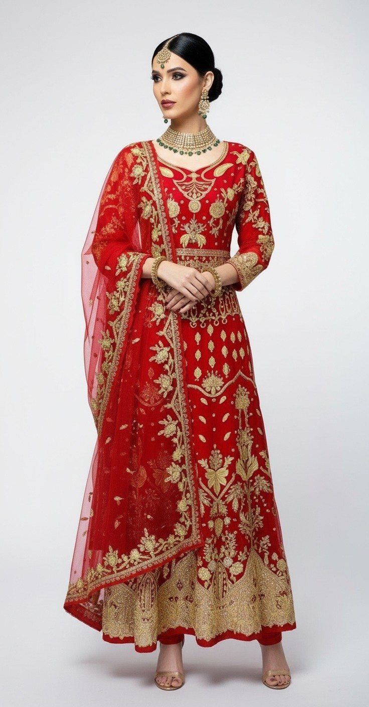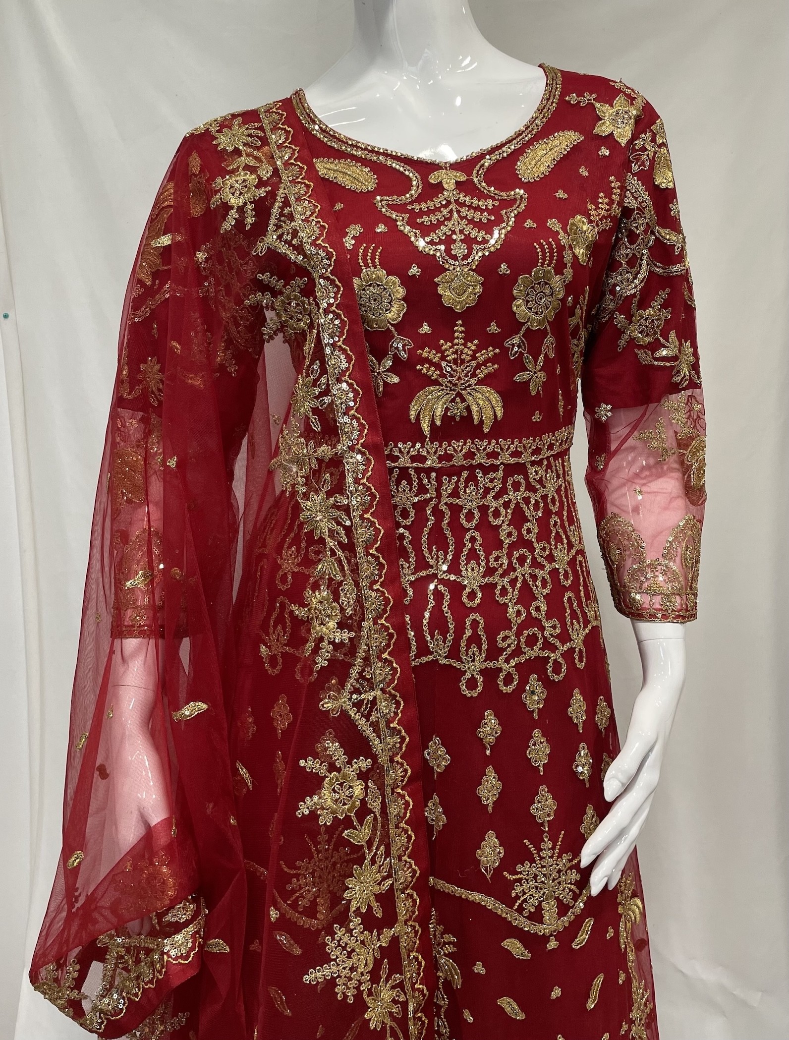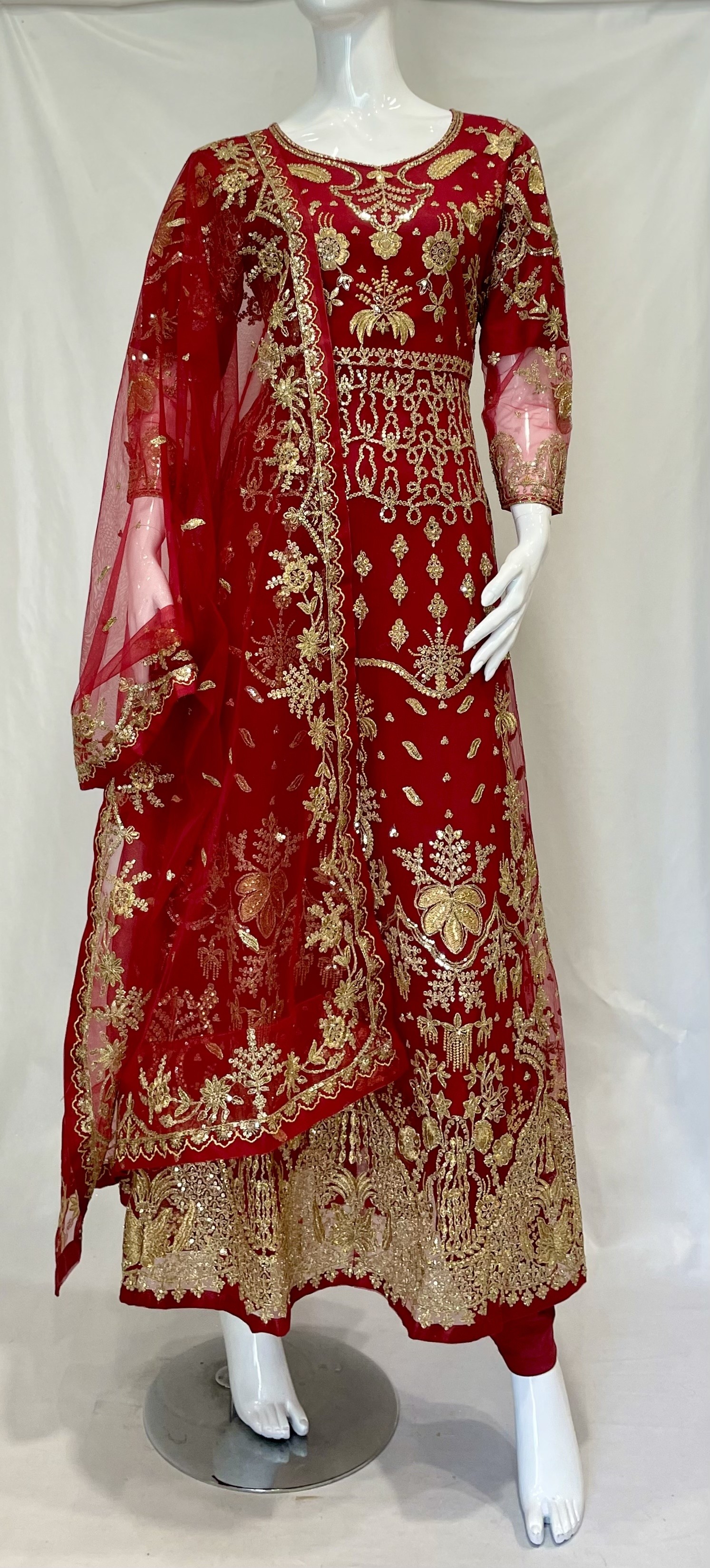 Tenue Indienne 3 pièces Rouge & Doré – Anarkali Churidar