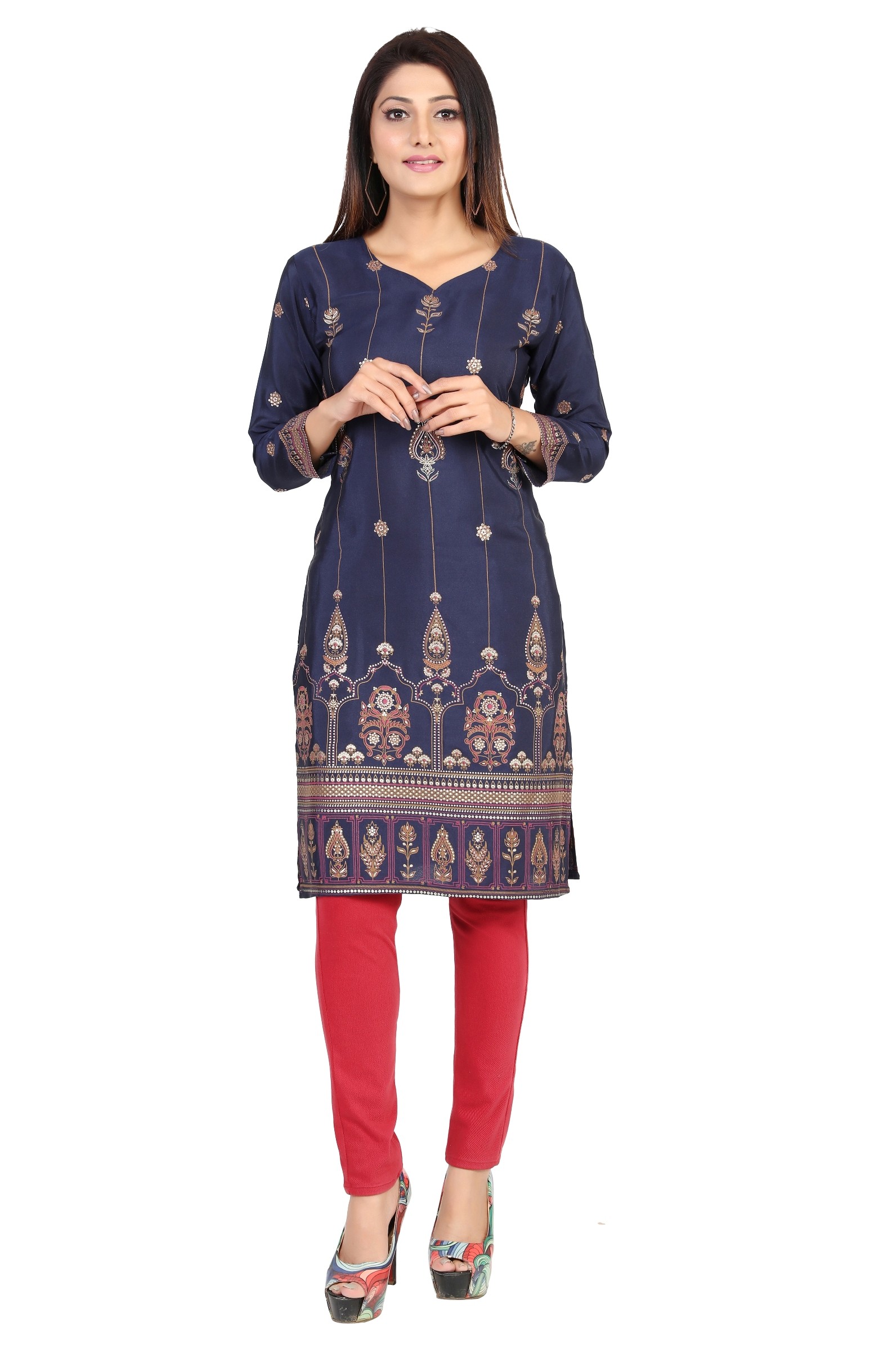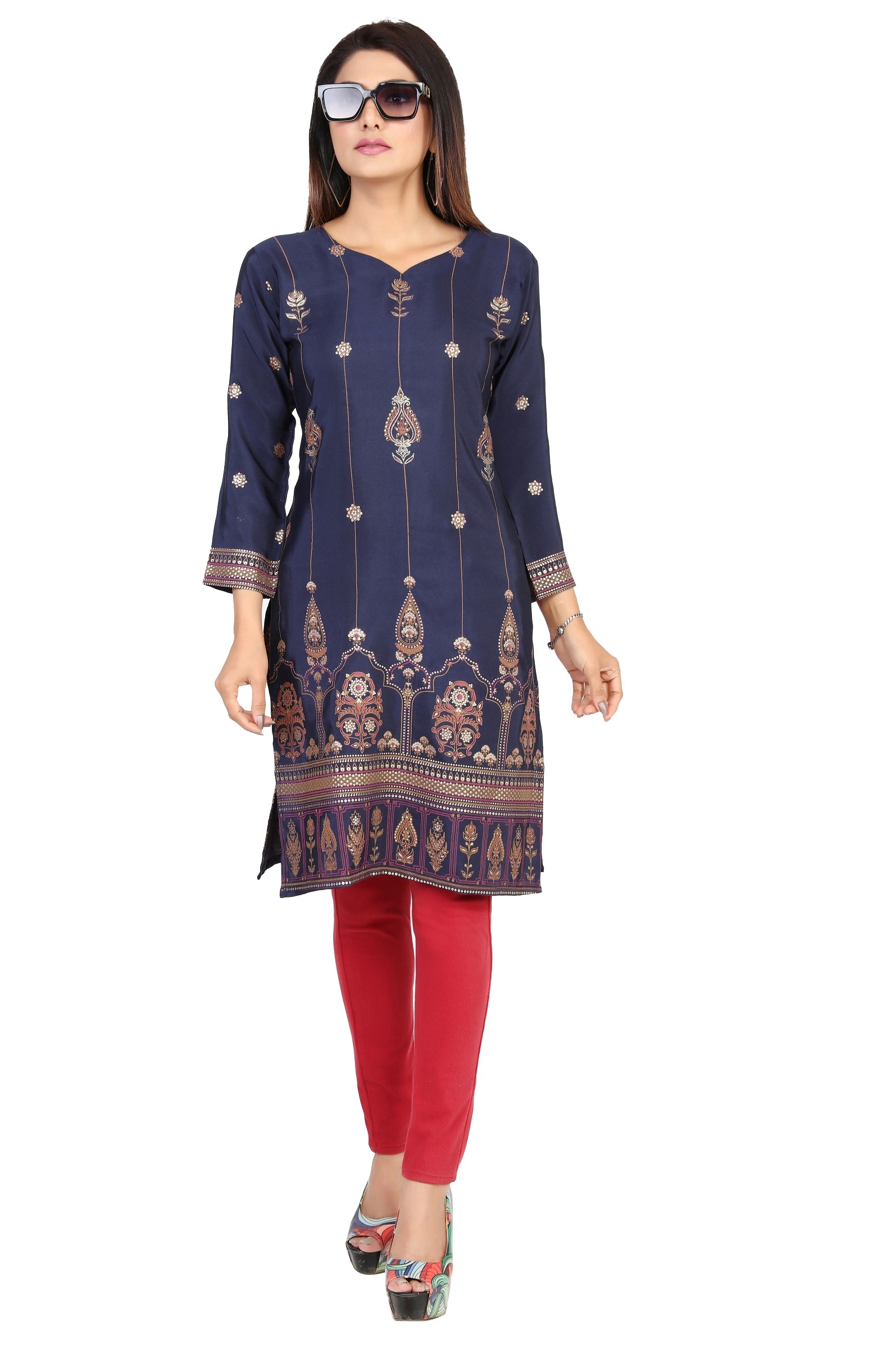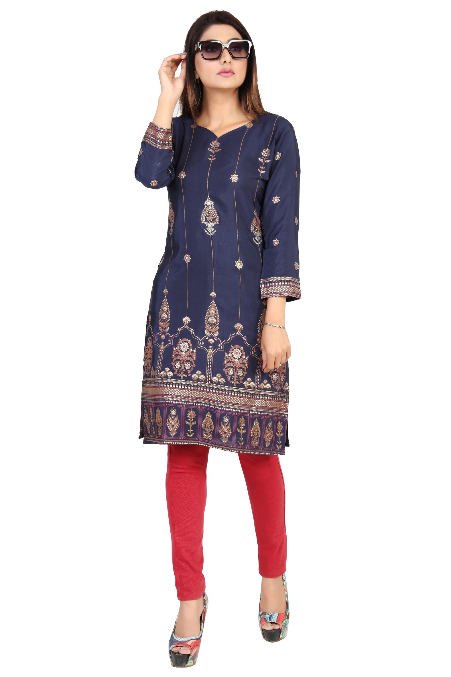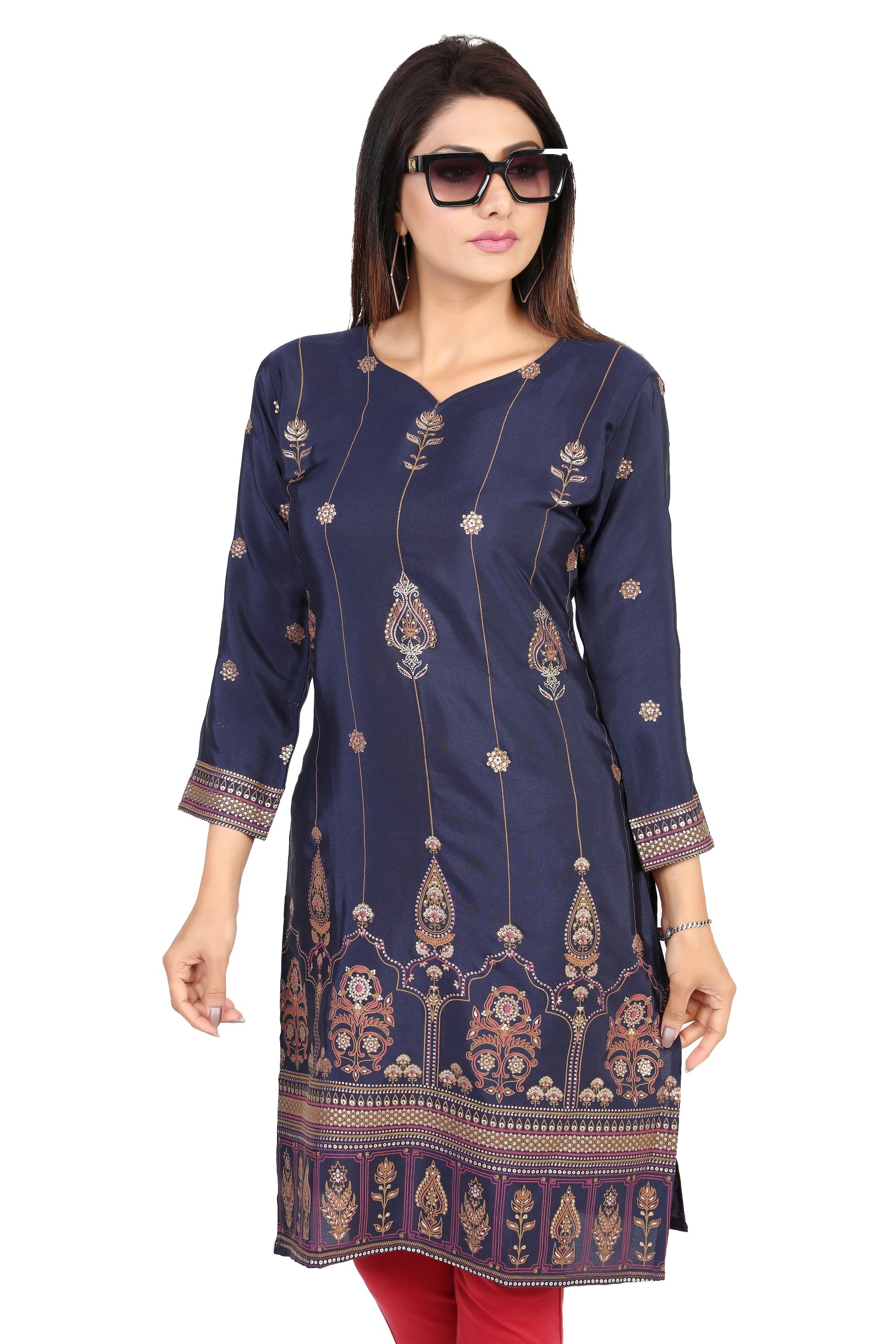 Confectionnée dans un tissu fluide et agréable à porter, cette kurti met en valeur de superbes motifs traditionnels indiens : dorés, floraux ou géométriques selon le modèle.