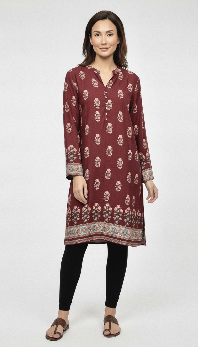Tunique Kurti indienne longue imprimée – un style élégant et confortable pour toutes les occasions !