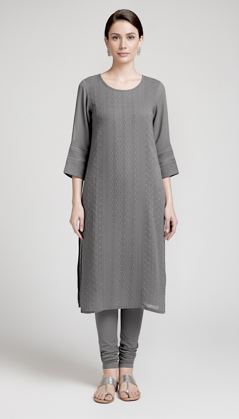 Kurti en Tissu crepe Americain, trés leger idéale pour printemps/été. Porter genéralement avec un jean.