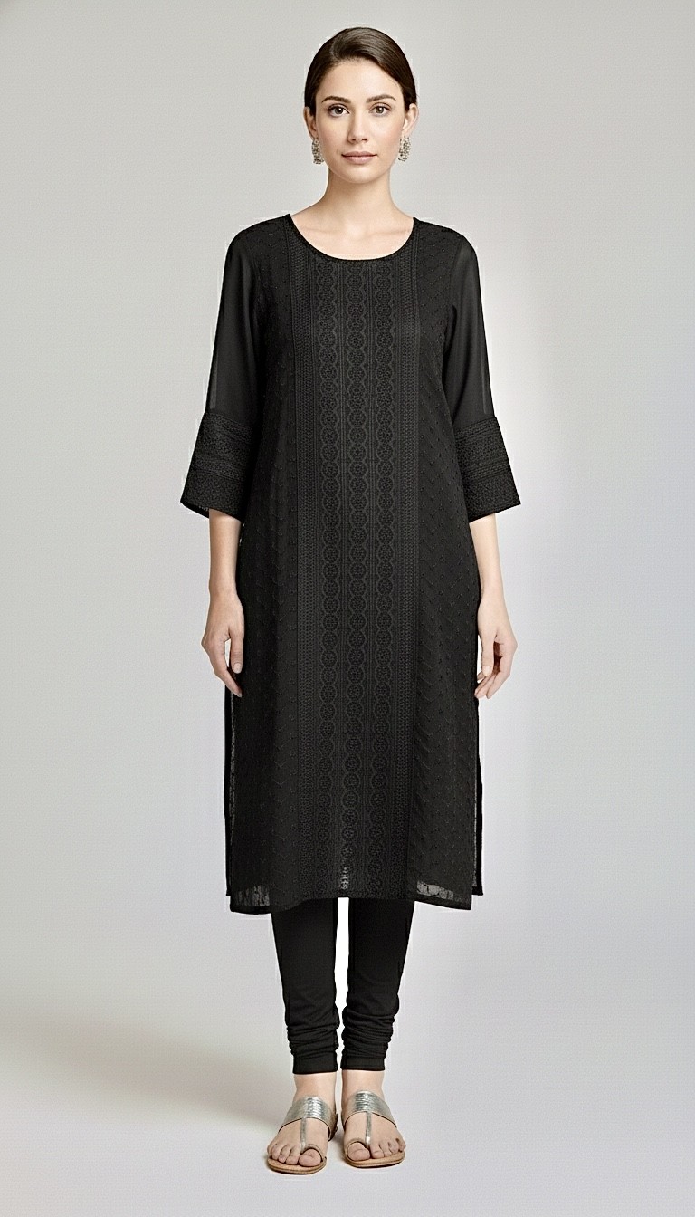 Tunique indienne Robe longue Kurti Blue Hills M24 Blanc
