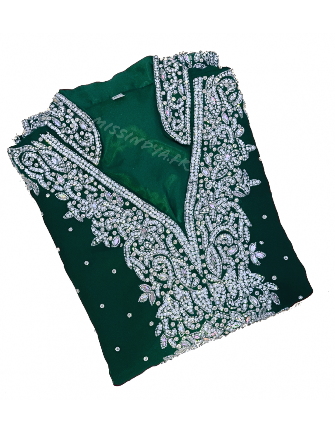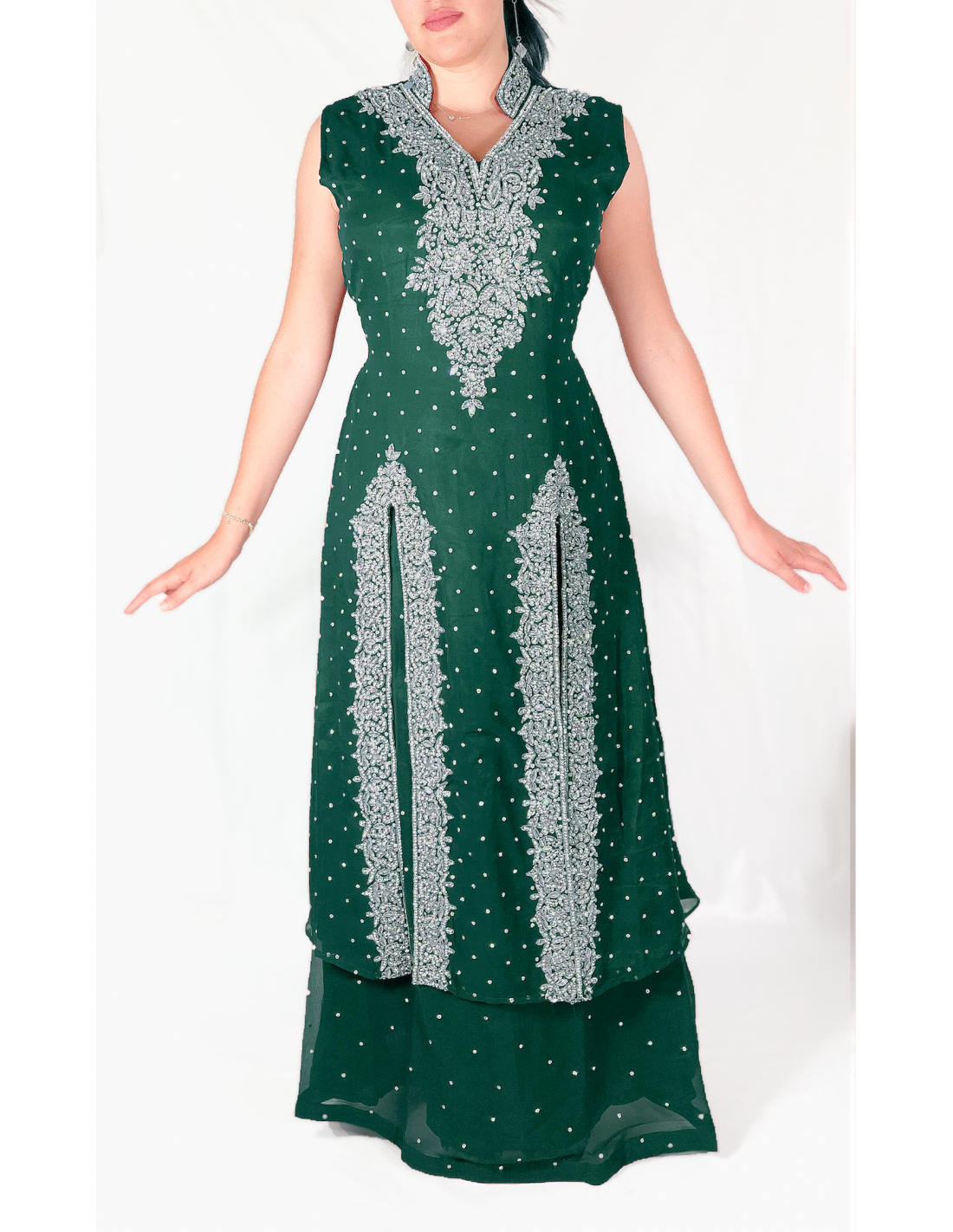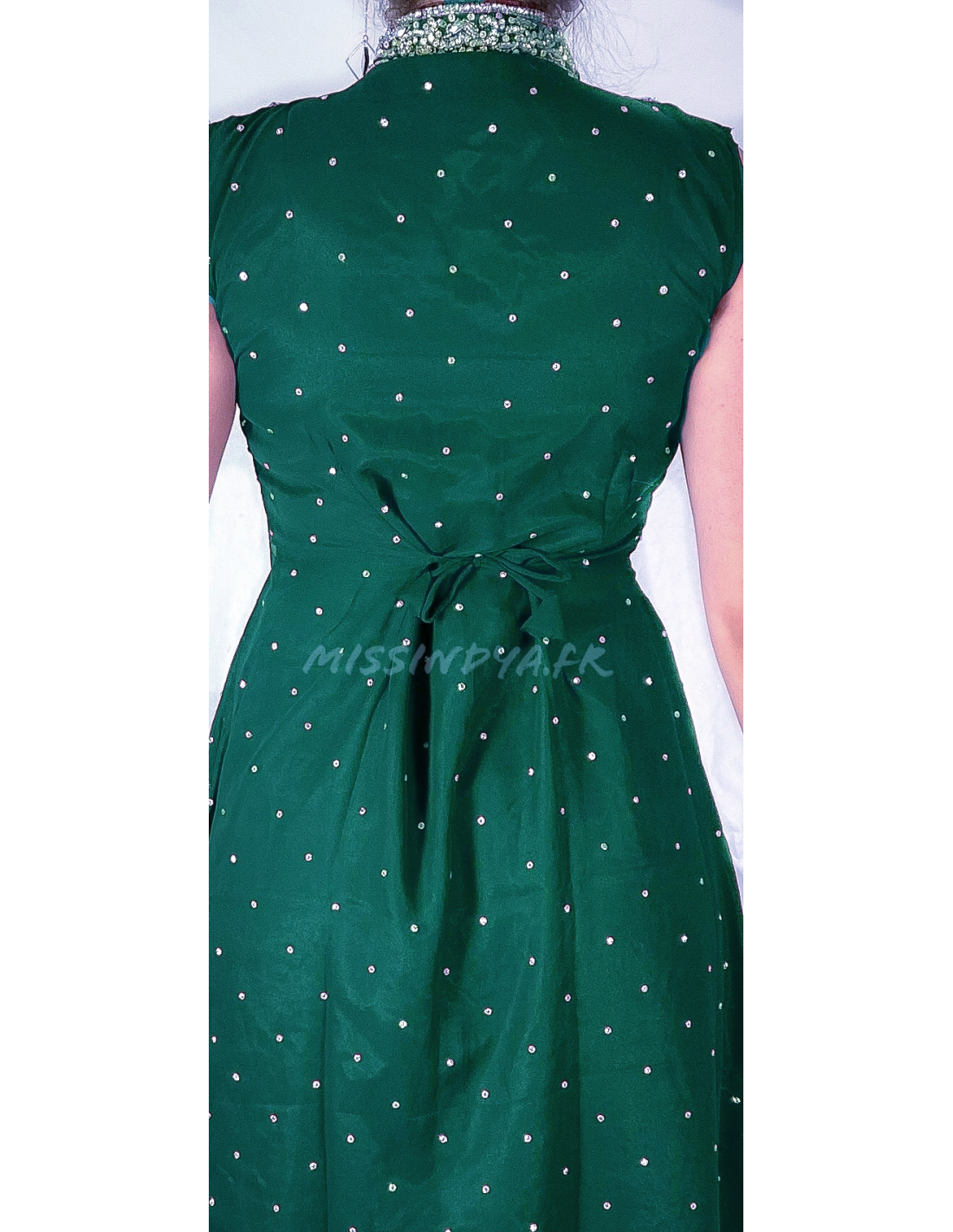 Lehenga choli maharani sari perlé vert argente