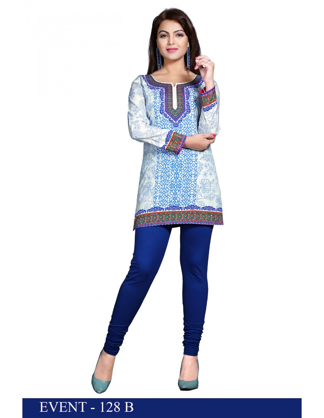 Tunique indienne ethnique kurti bohème Blanc Bleu A23  - 1