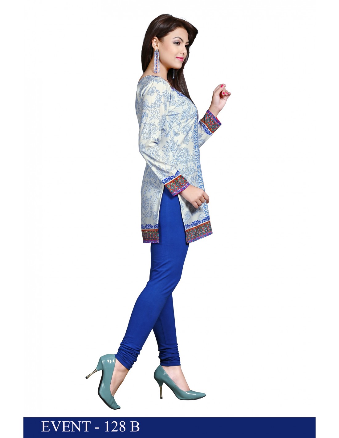 Tunique indienne ethnique kurti bohème Blanc Bleu A23