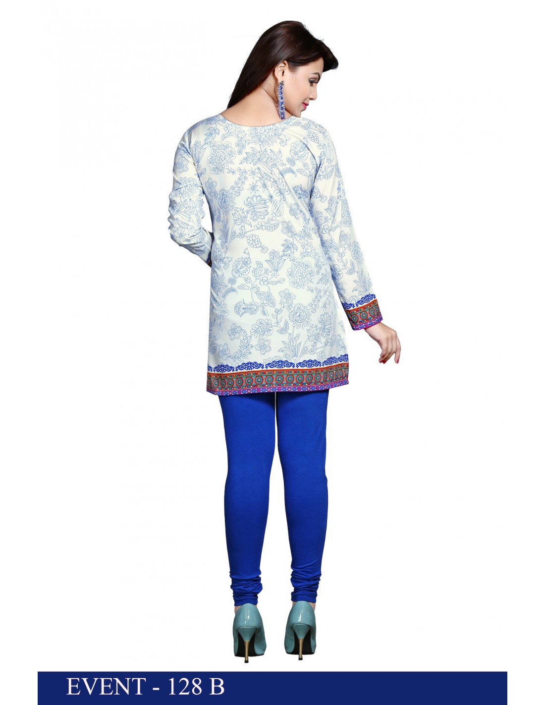 Tunique indienne ethnique kurti bohème Blanc Bleu A23  - 3