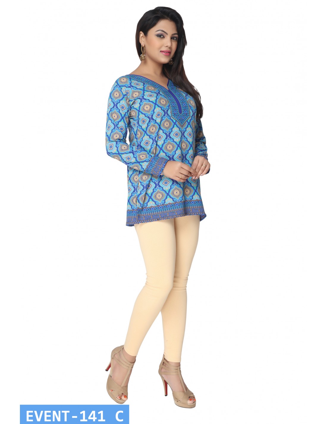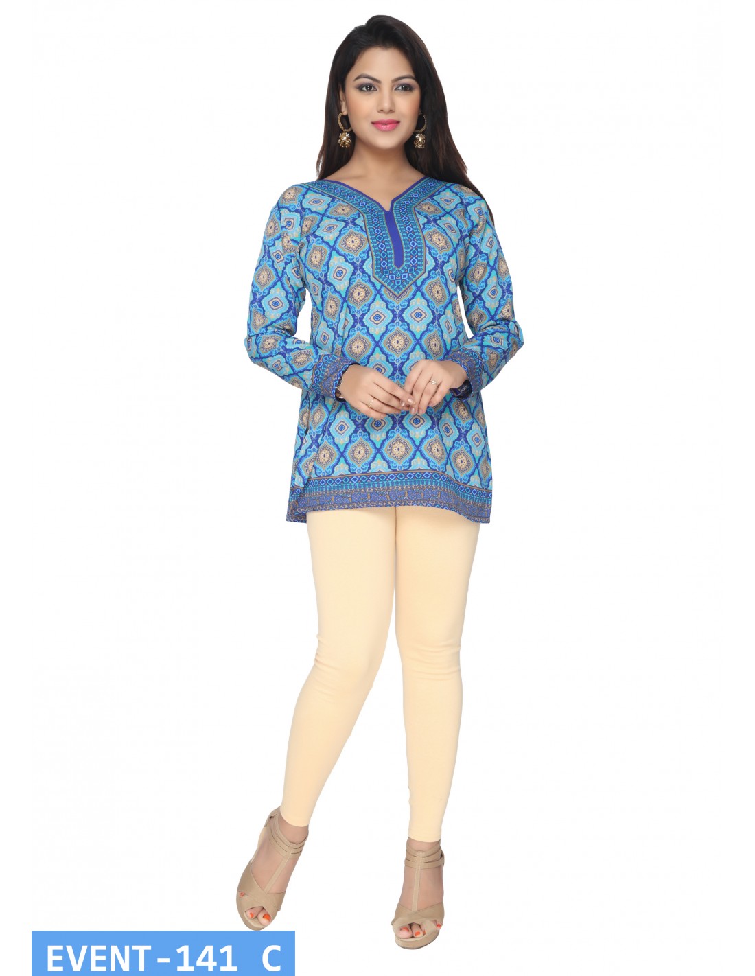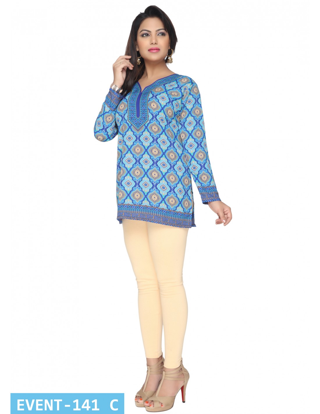 Kurti en Tissu crepe Americain, trés leger idéale pour printemps/été. Porter genéralement avec un jean.