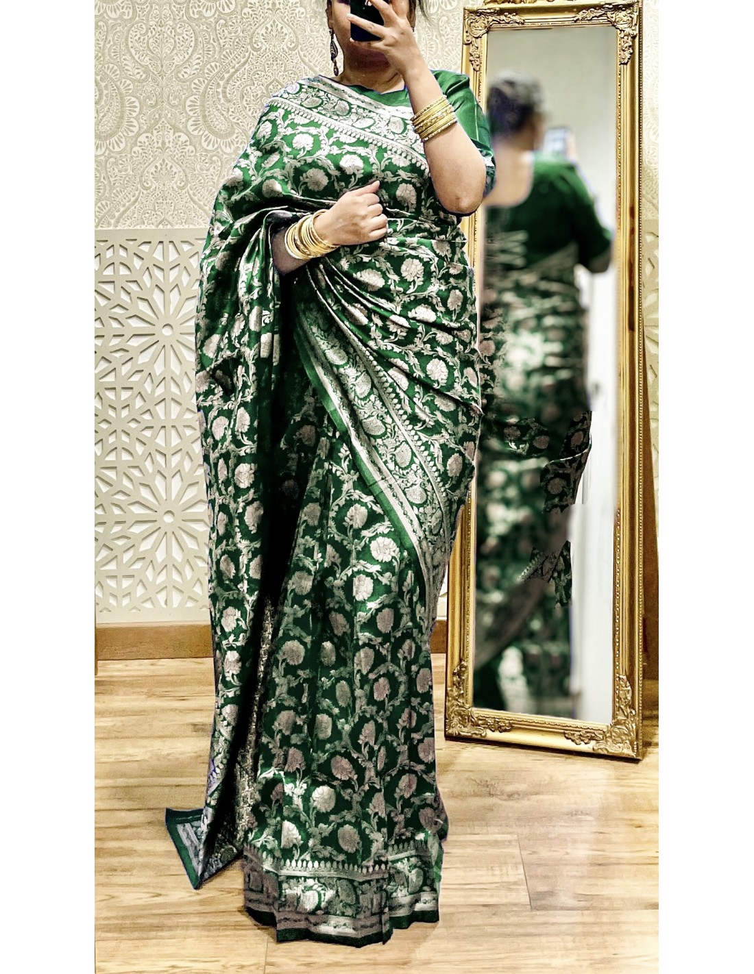 Sari indien prêt a porter aloka soie silk Vert  - 1