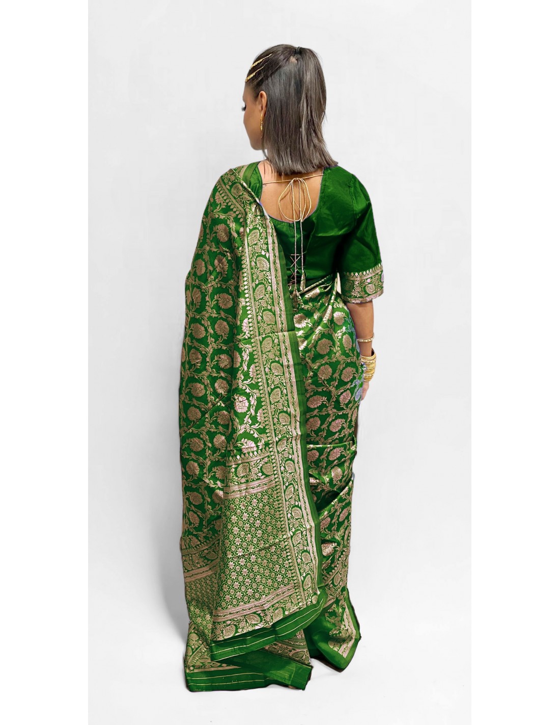 Sari indien prêt a porter aloka soie silk Vert  - 2