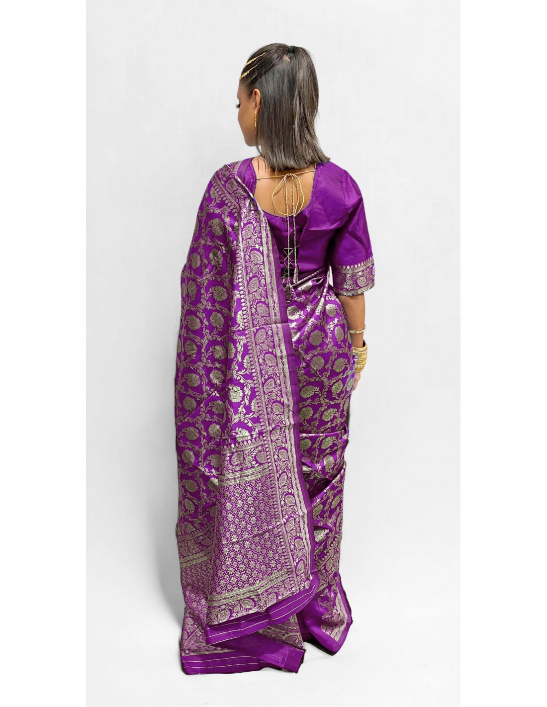 Sari indien prêt a porter aloka soie silk Violet  - 1