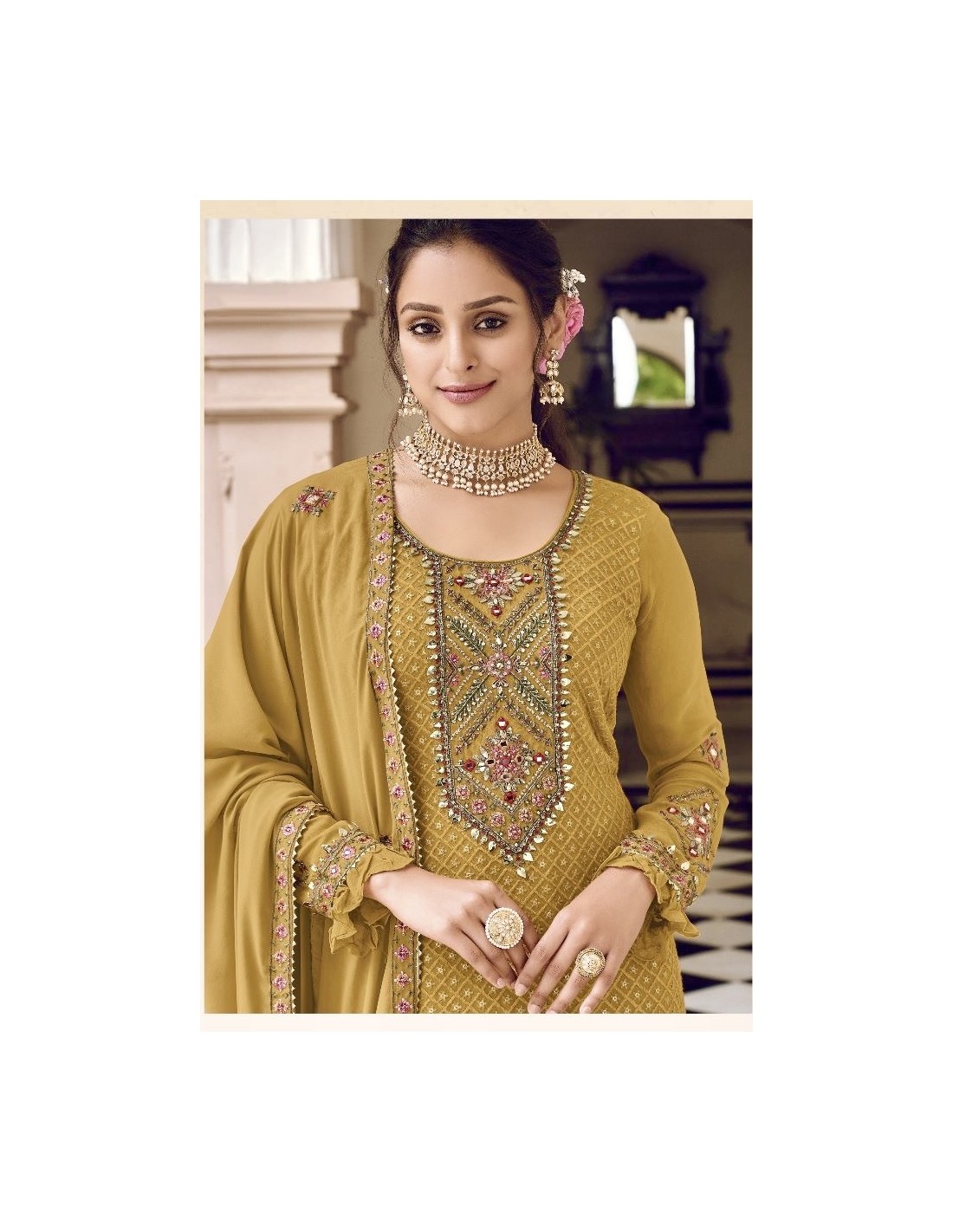 Salwar Kameez comprenant la tunique doublée, le pantalon et une étole richement travaillé