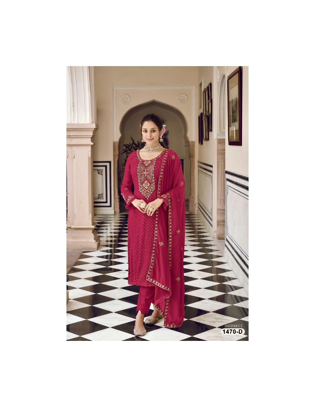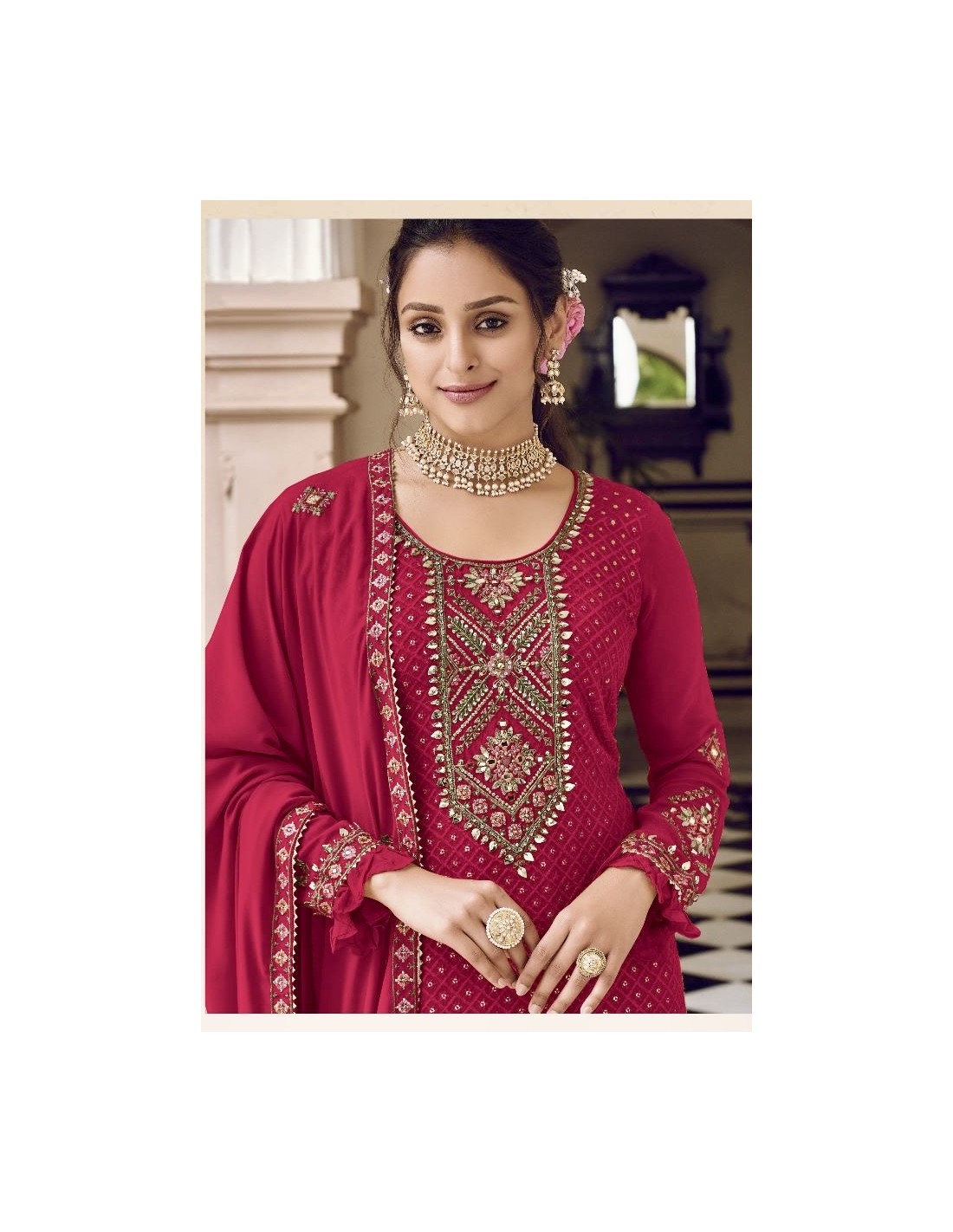 Salwar Kameez comprenant la tunique doublée, le pantalon et une étole richement travaillé
