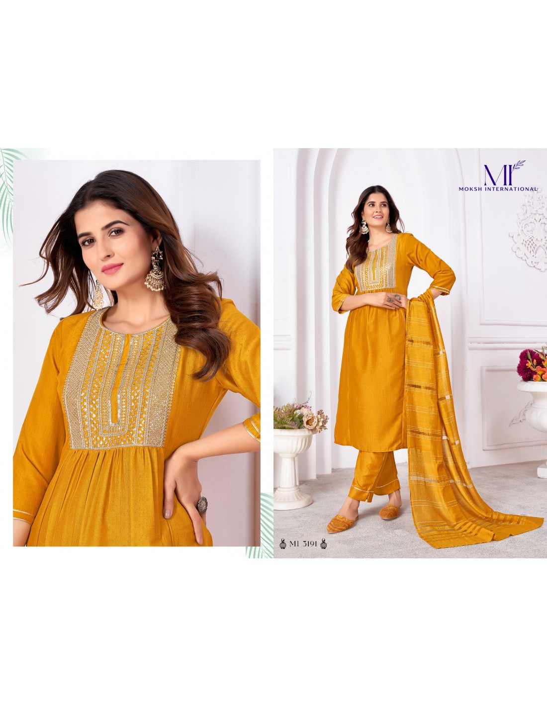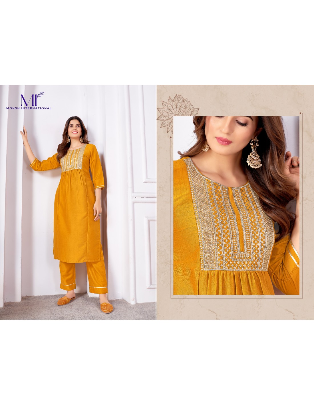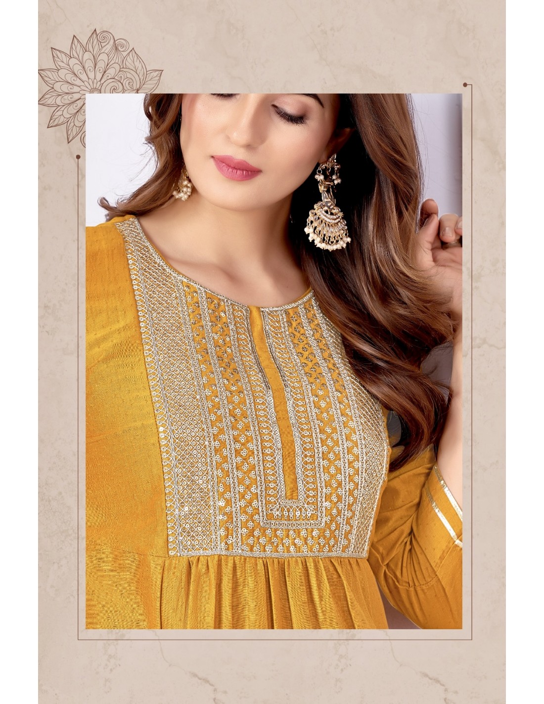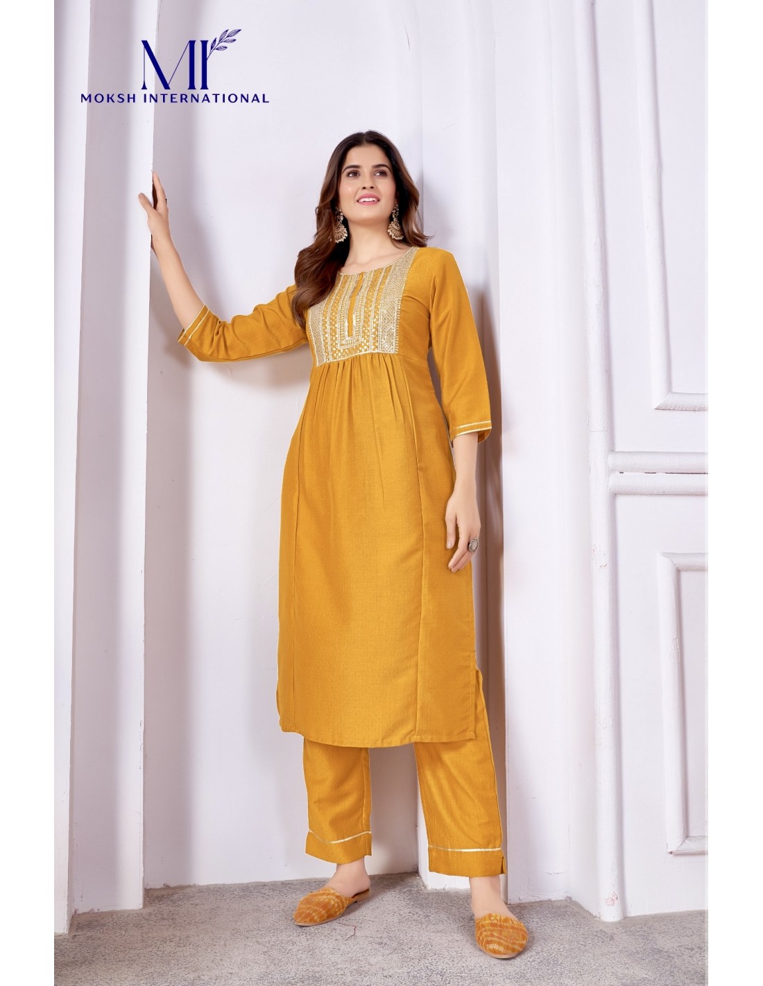 Salwar Kameez Comprenant: tunique longue, fendue sur les cotés, brodée de motifs floraux,