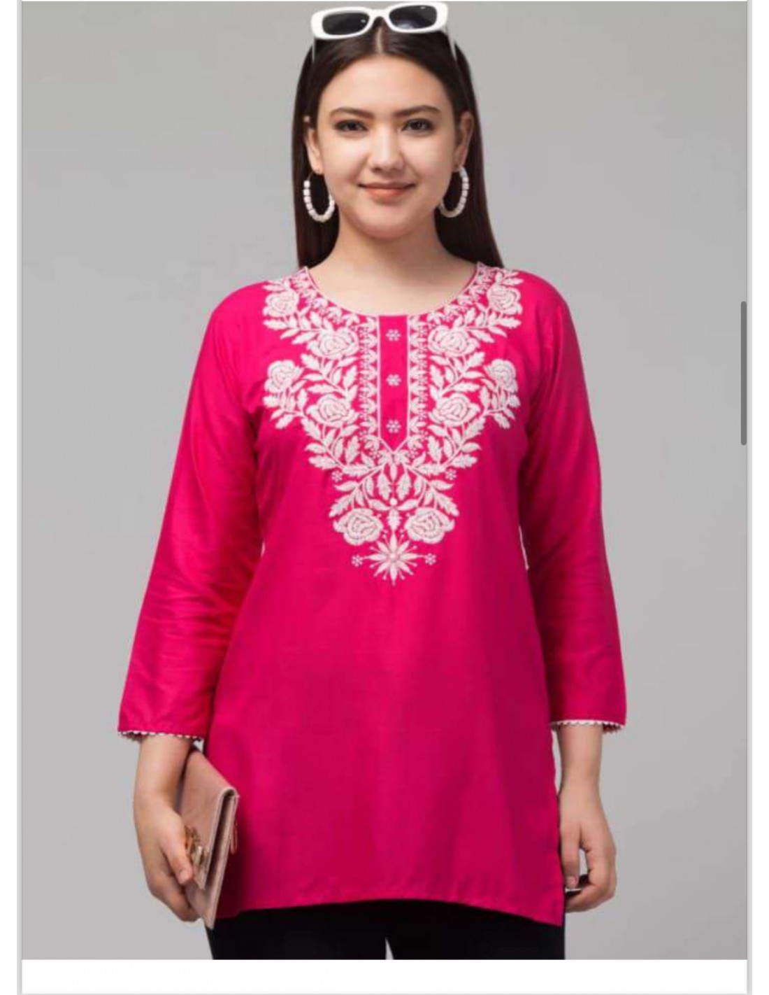 Tunique indienne Georgette humeira kurti Rose et blanc  - 1