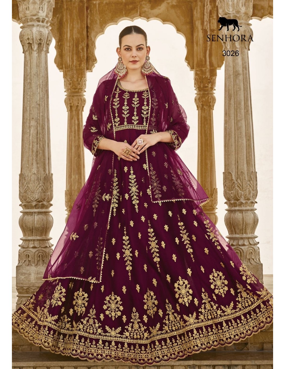 Gown indienne pakistanaise anarkali salwar churidar  Senhora mauve et doré  - 1