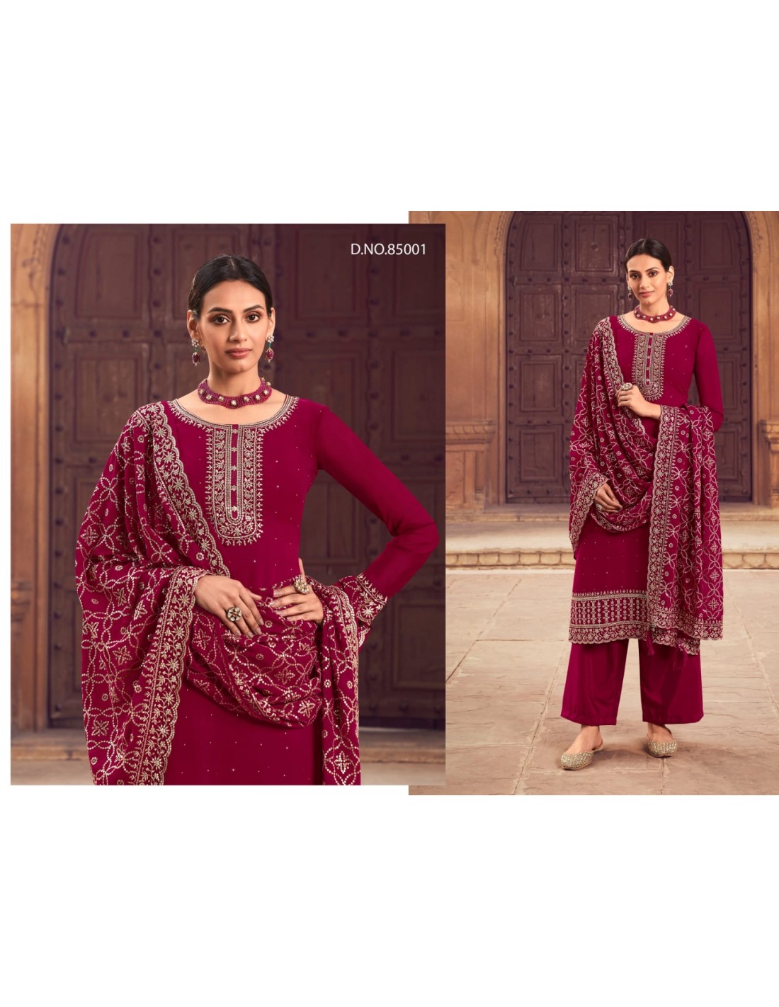 salwar kameez cerise, tenue mariage femme, broderies argentées, mode ethnique, dupatta chic, robe cérémonie, vêtements traditionnels, ensemble luxe.
