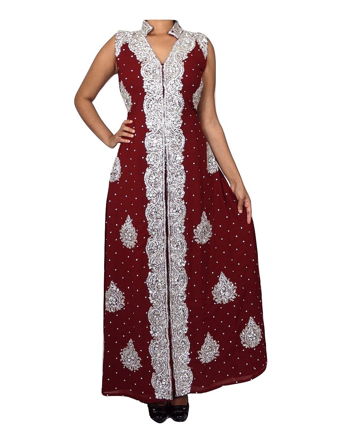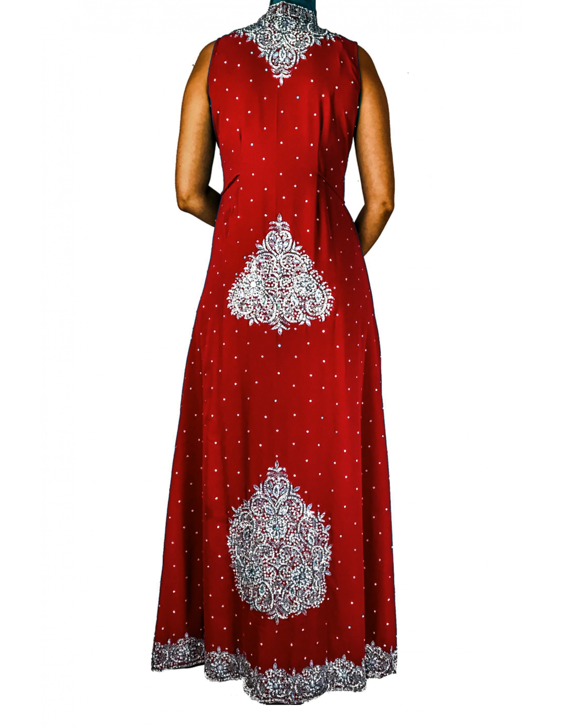 Robe indienne de soirée dhkamak cristal Argenté et rouge SEPT16  - 1