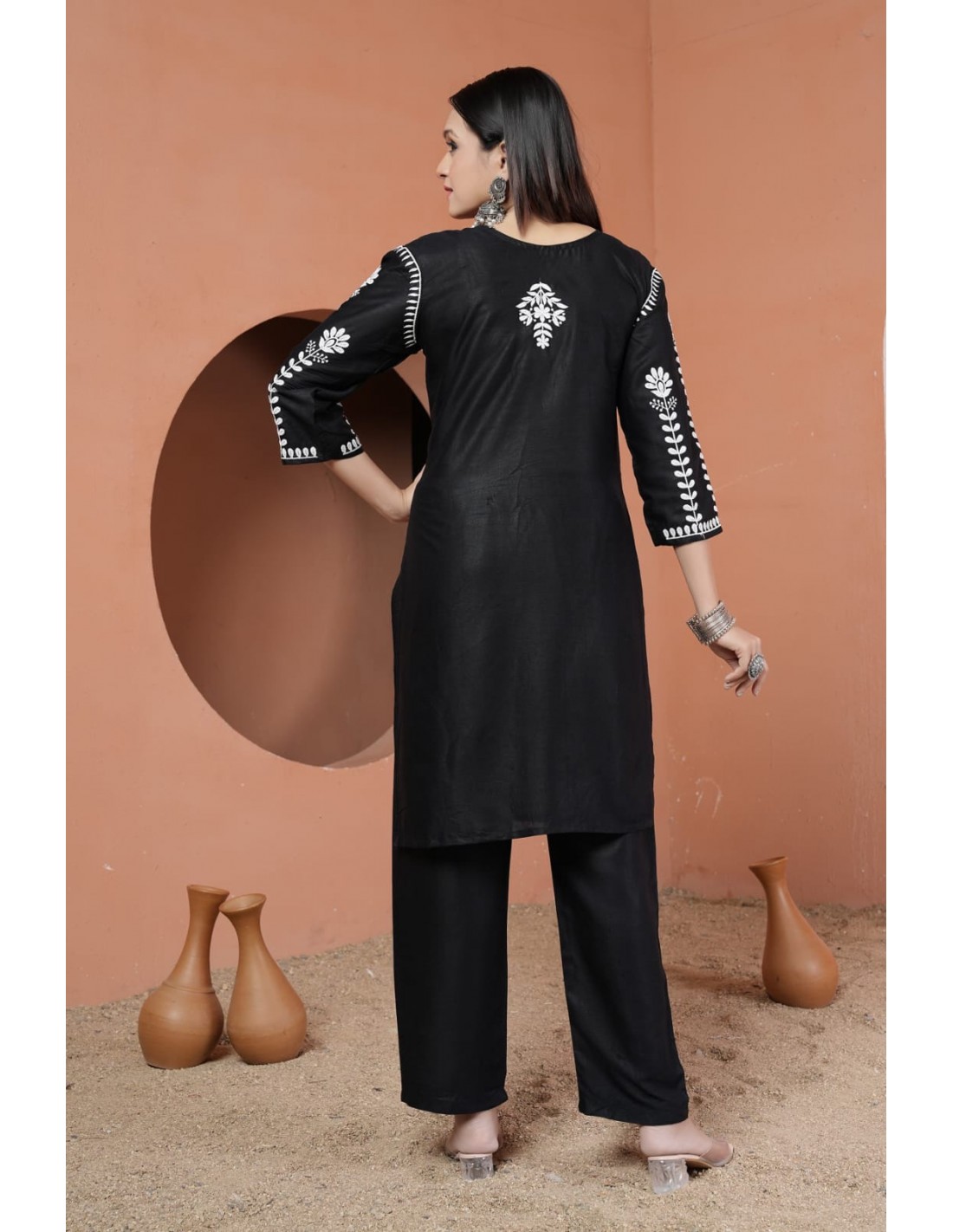 Ensemble Kurti et Pantalon Noir Brodé – Élégance et Raffinement  - 2