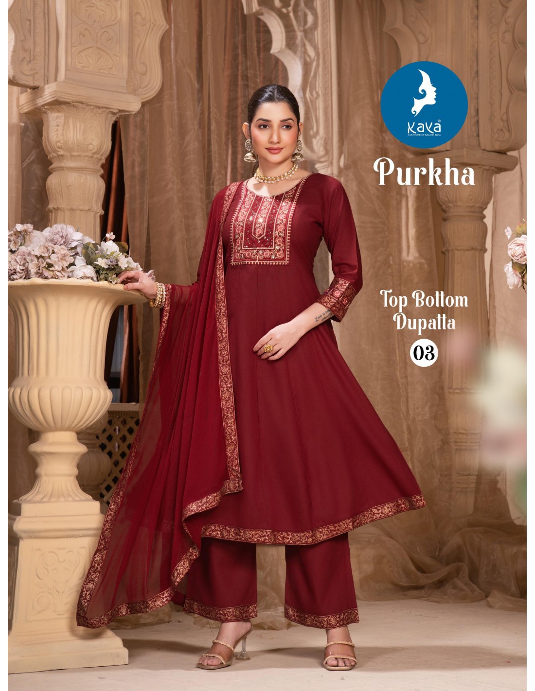 Plongez dans l’univers raffiné de la collection Purkha avec cet ensemble traditionnel 3 pièces composé d’une tunique Anarkali, d’un pantalon droit et d’un dupatta fluide. Confectionné en reyon doux et fluide, cet ensemble se distingue par sa coupe évasée flatteuse, son empiècement brodé au col et ses finitions dorées élégantes sur l’ourlet et les manches.