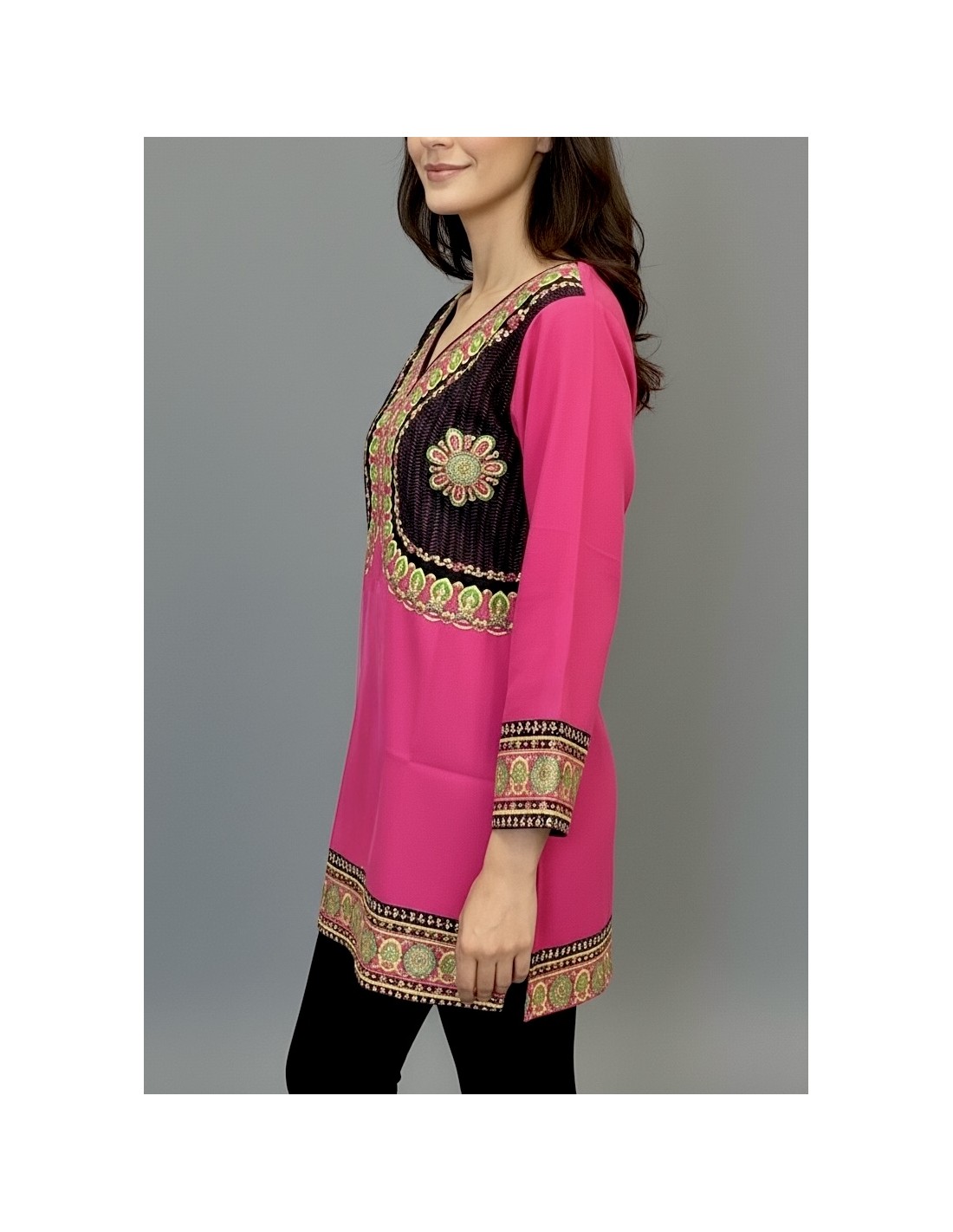 Tunique indienne ethnique kurti bohème Rose A23  - 1