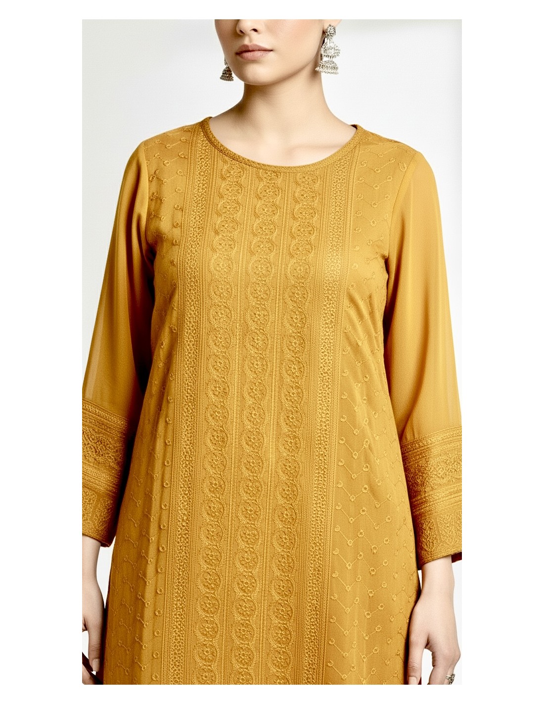 tunique manches longues, brodé de motifs indiens.