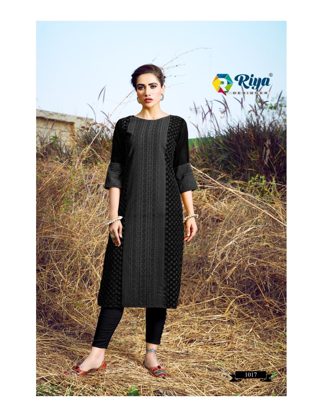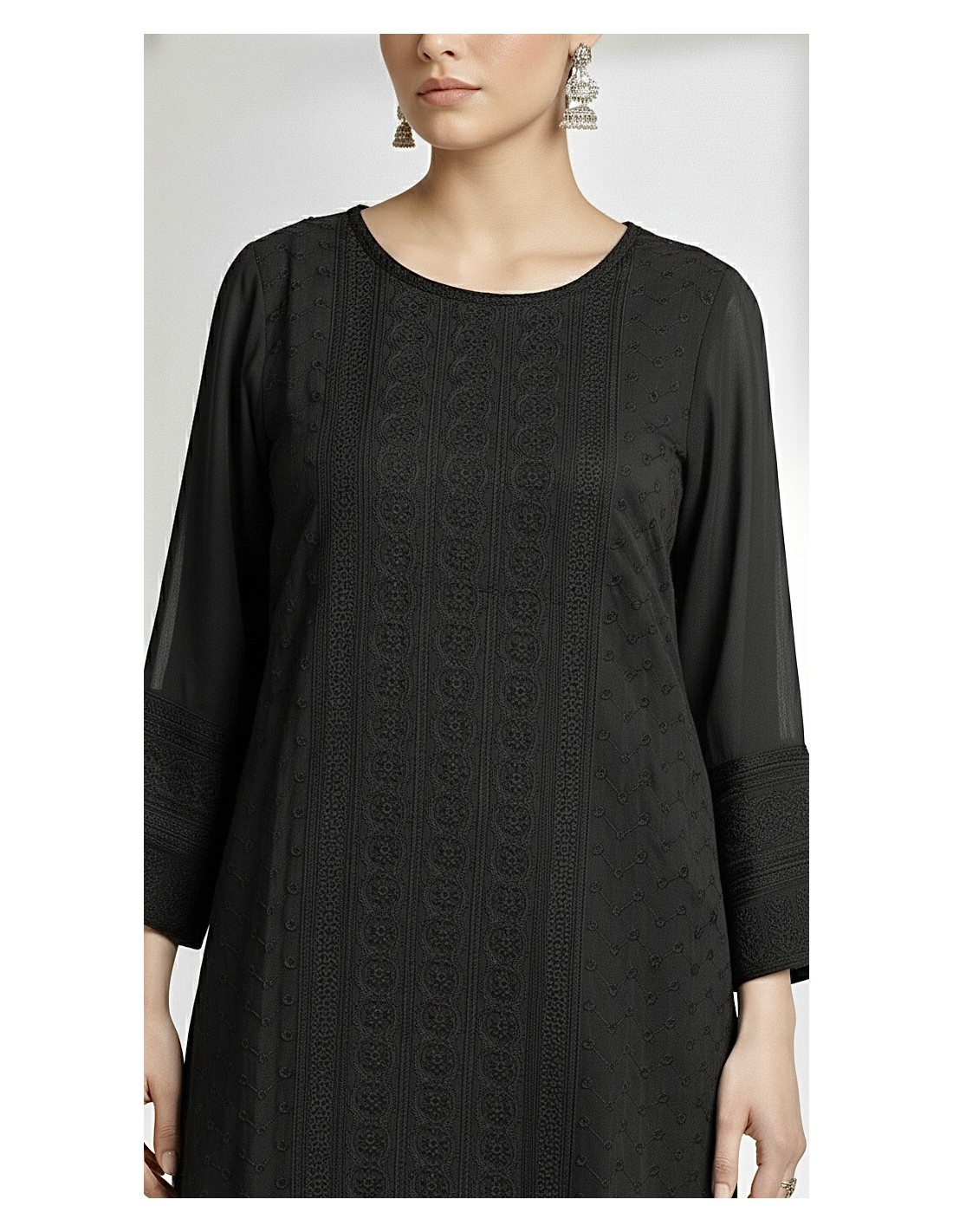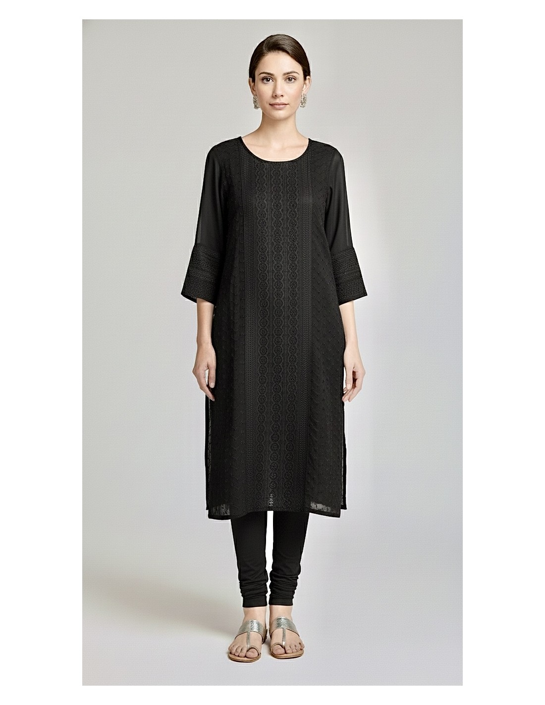 Tunique kurti indienne robe longue Noir brode  - 1