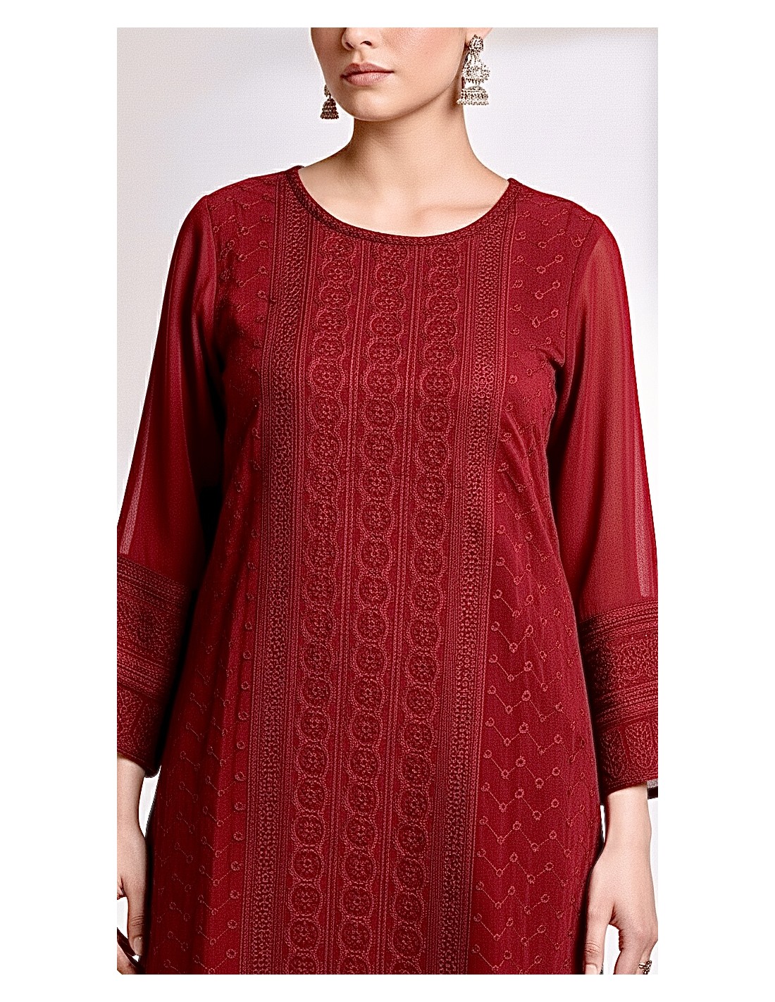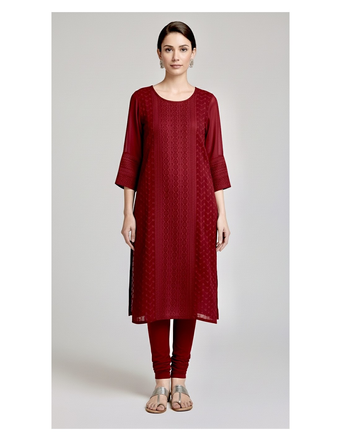 Tunique indienne Kurti longue Rouge foncé  - 1