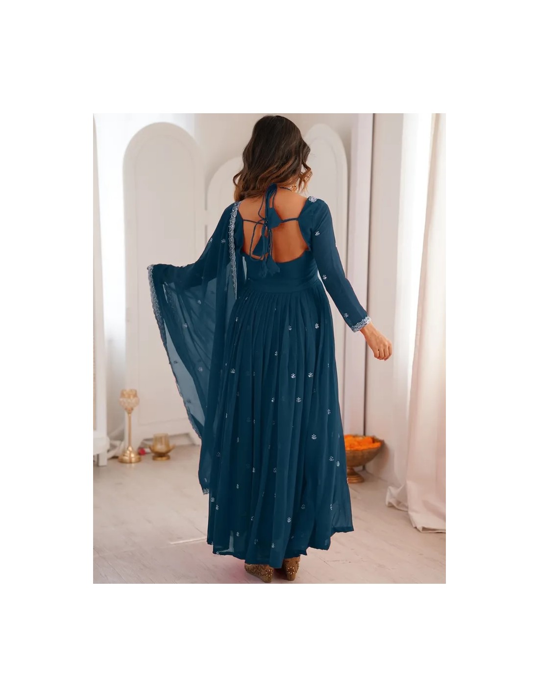 Robe Anarkali Brodée Luxe – Tenue Indienne Femme – Vert bleu  - 2
