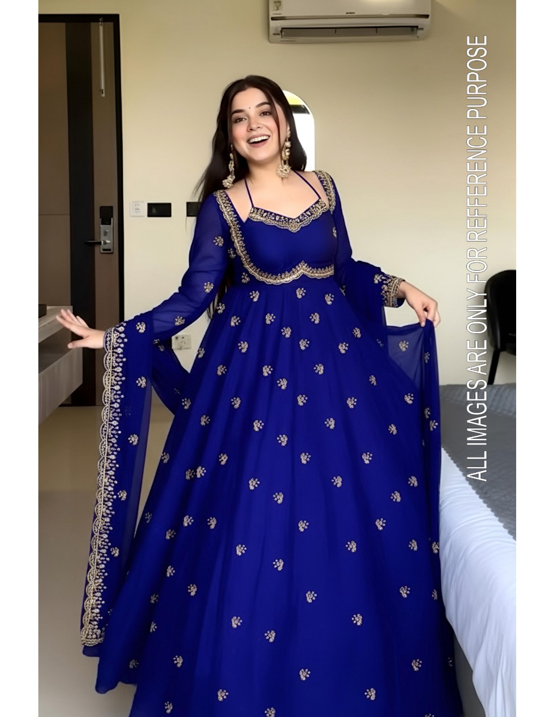 Robe Anarkali Brodée Luxe – Tenue Indienne Femme – Bleu Royal  - 1