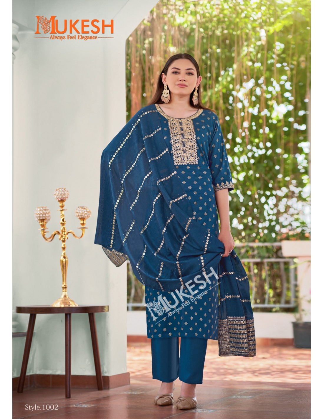 Tenue Indienne Grande Taille – Élégance & Confort – Anarkali Mukesh Bleu  - 1