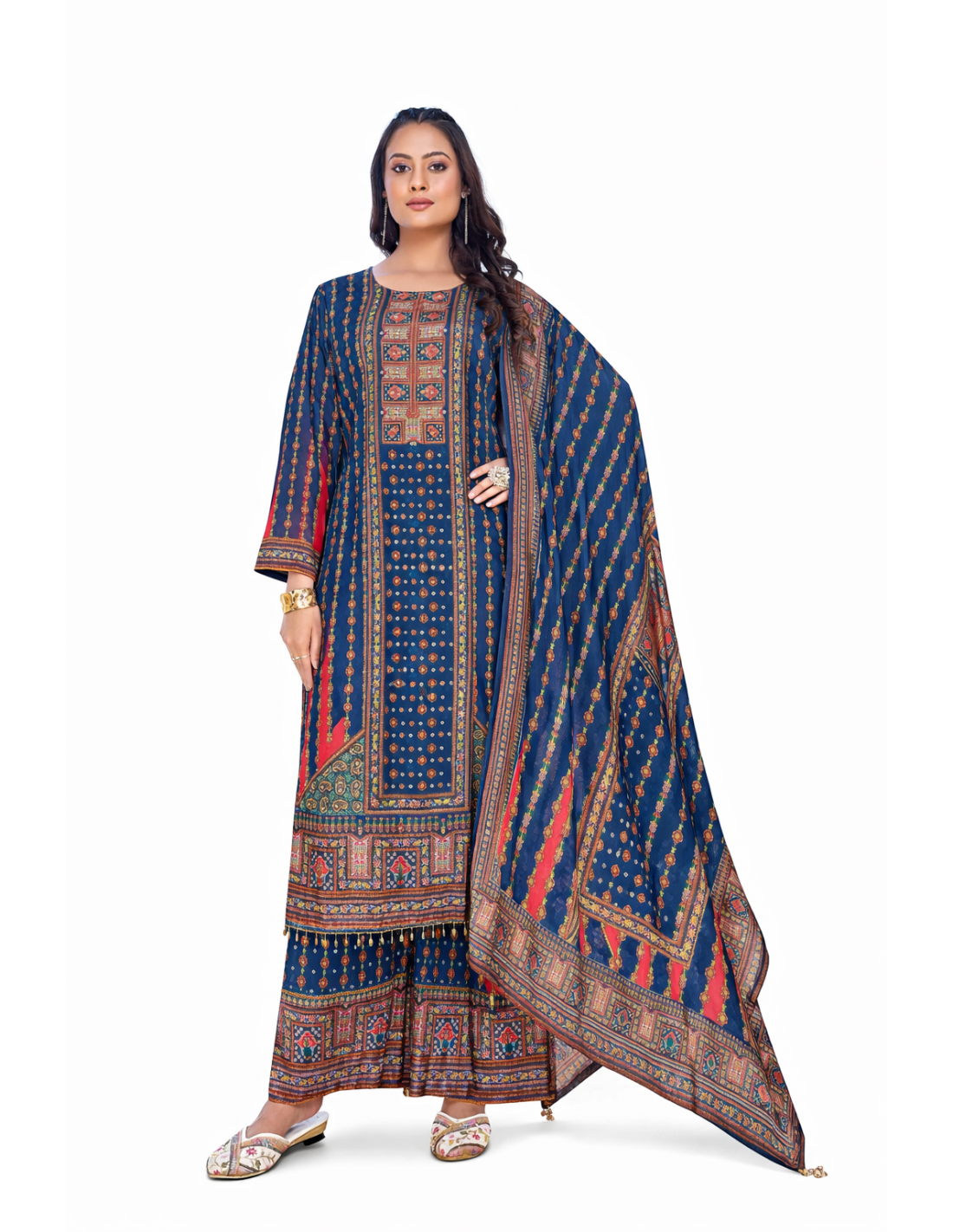 • Ensemble 3 pièces : tunique, pantalon et dupatta